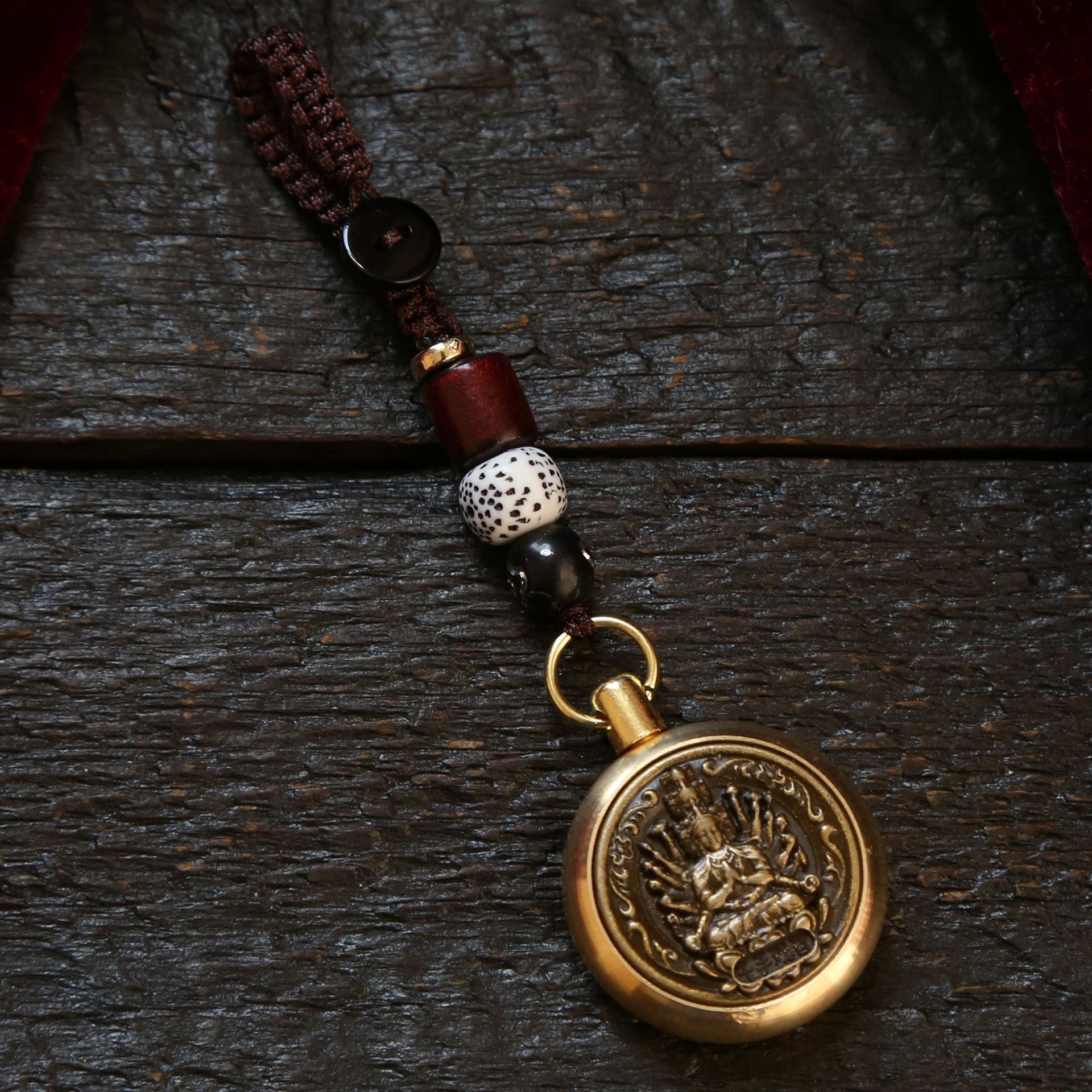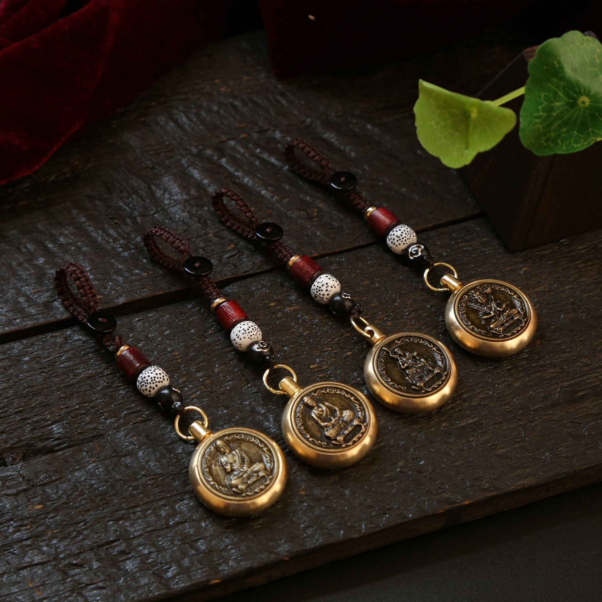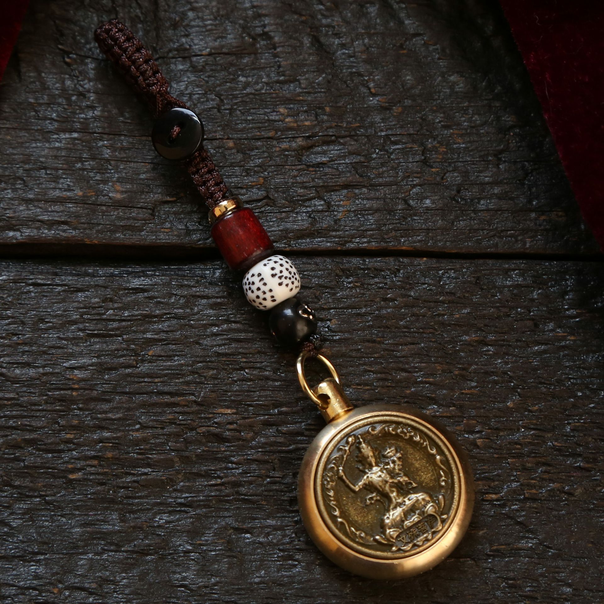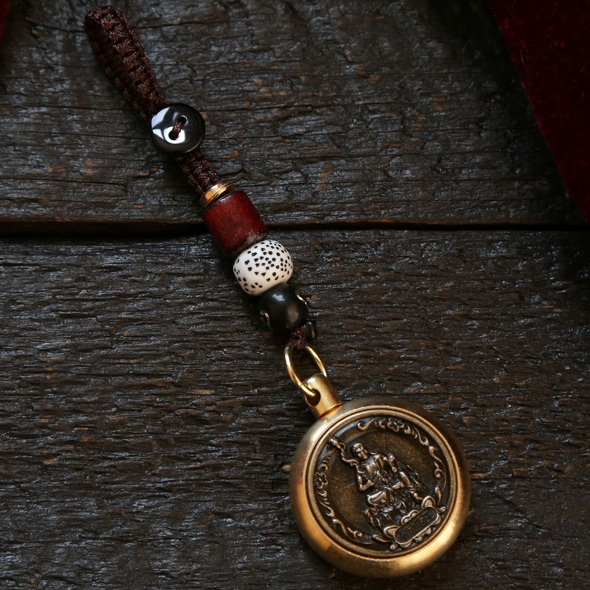 행운의 보물 여덟 후원자 세인트 조디악 축제 선물 펜던트 수제 로프 자동차 펜던트에 황동 회전스토어 가기