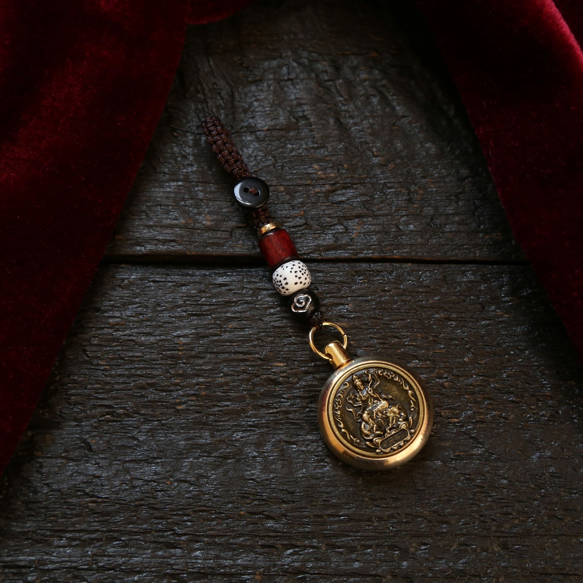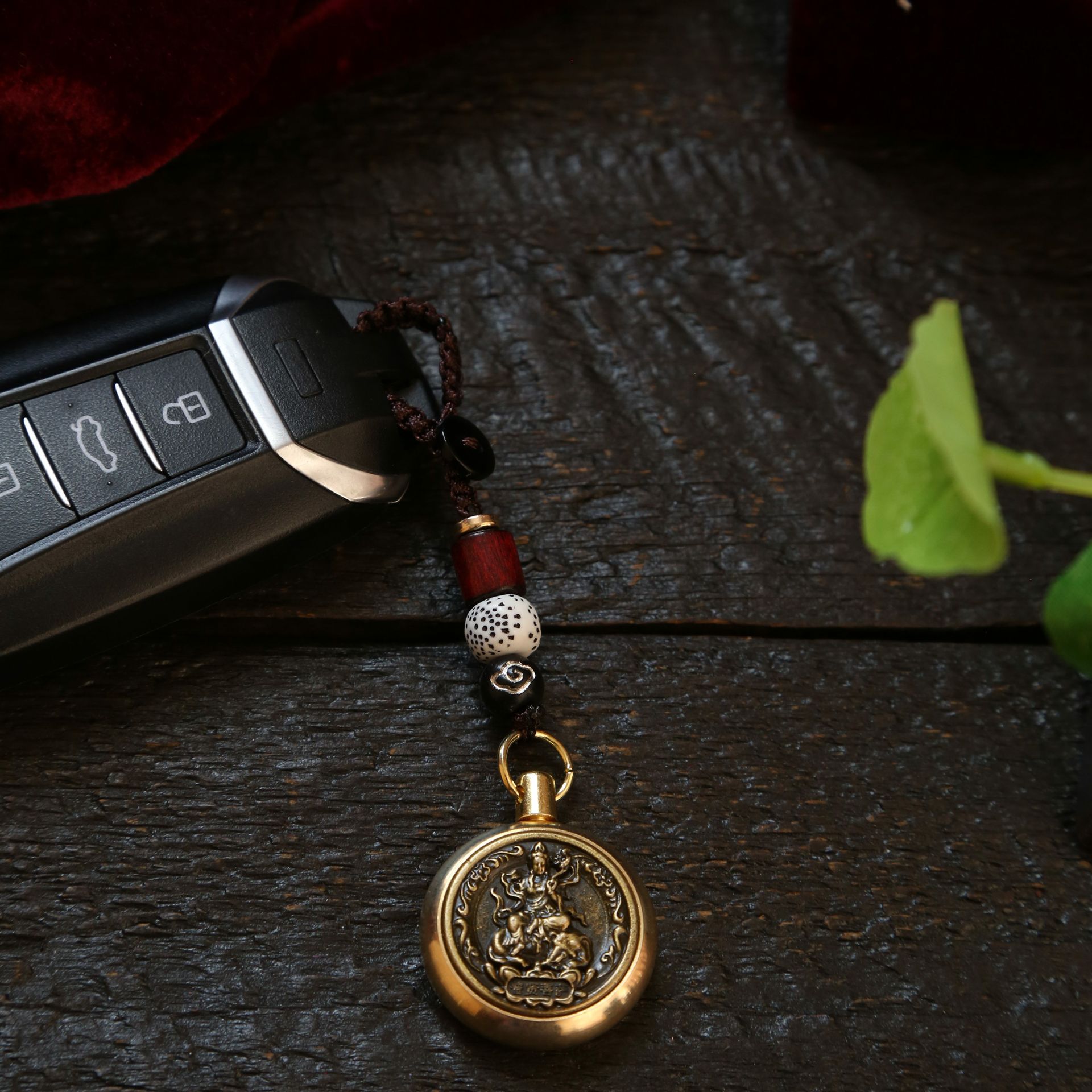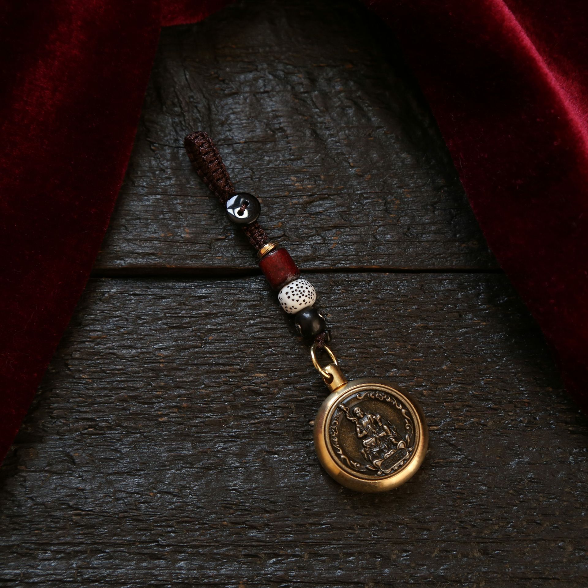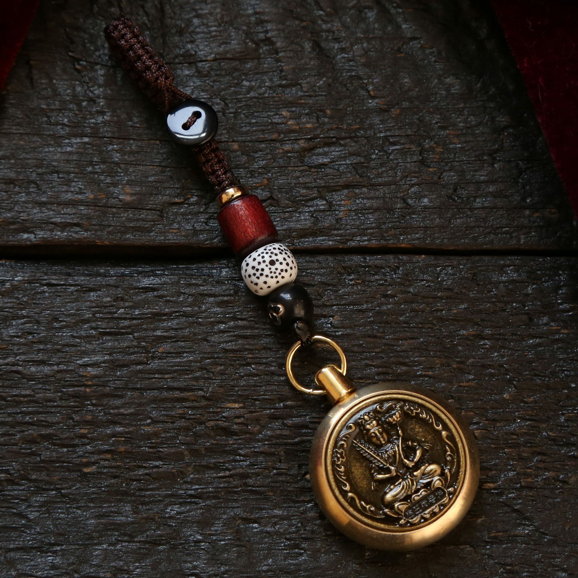 행운의 보물 여덟 후원자 세인트 조디악 축제 선물 펜던트 수제 로프 자동차 펜던트에 황동 회전스토어 가기