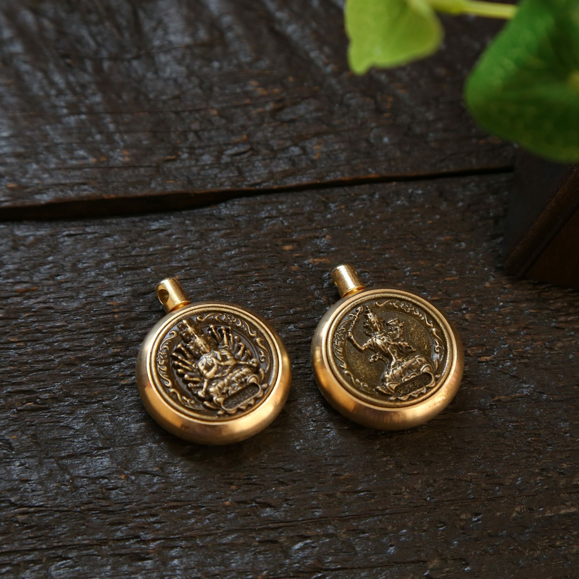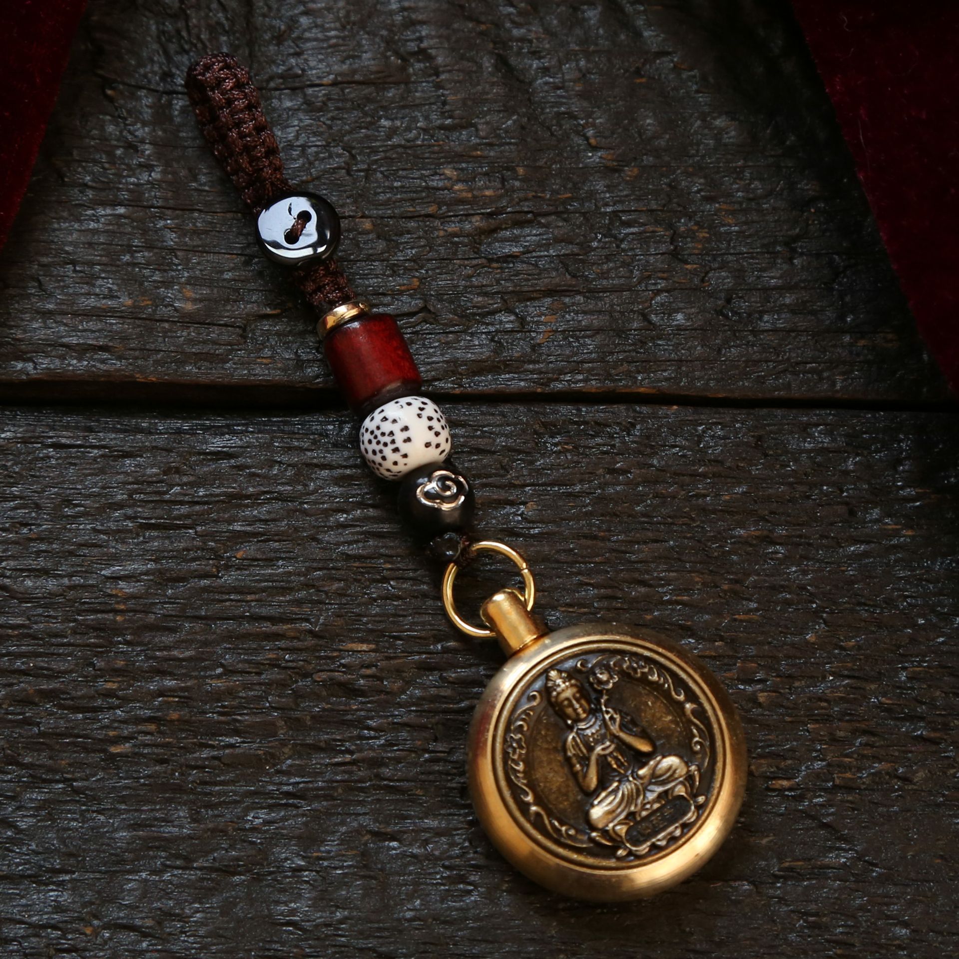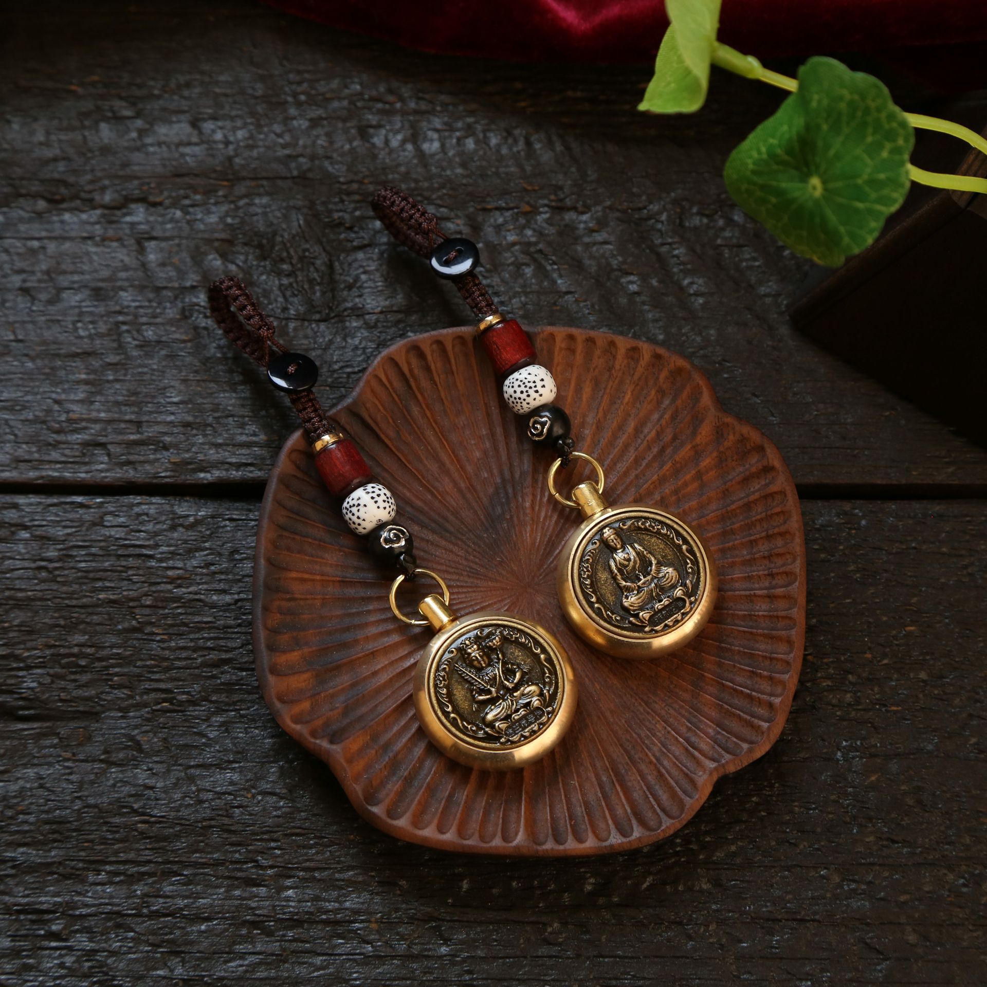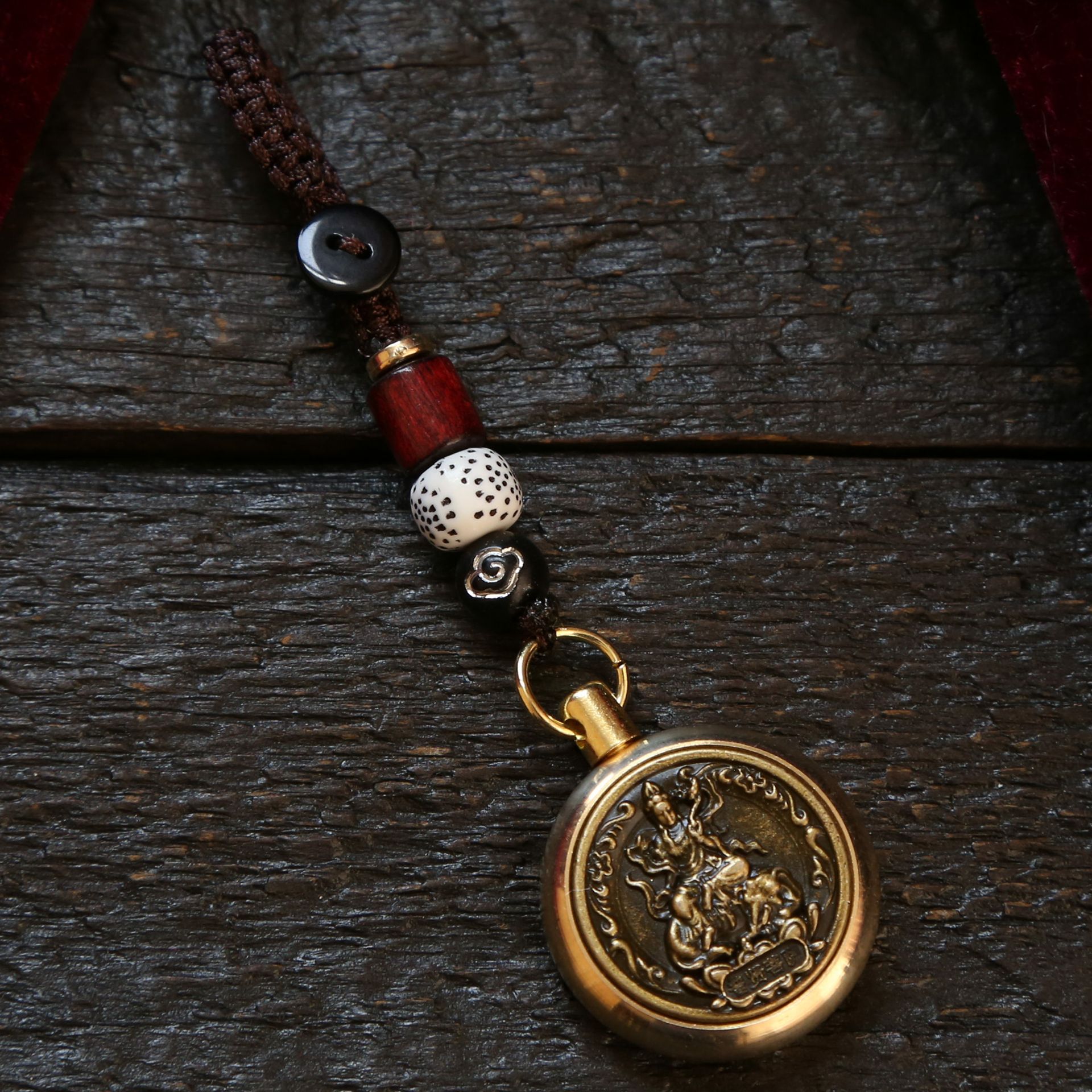 행운의 보물 여덟 후원자 세인트 조디악 축제 선물 펜던트 수제 로프 자동차 펜던트에 황동 회전스토어 가기
