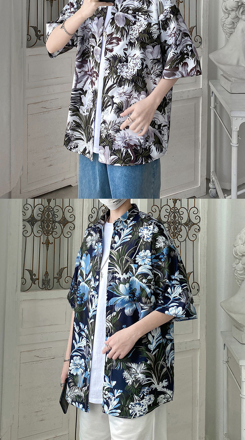 펜던트 셔츠 남자의 아메리칸 스타일 하와이안 비치 Ruffian Shuai 레트로 홍콩 맛 빈티지 셔츠 커플의 트렌디 한 골동품 꽃 셔츠스토어 가기