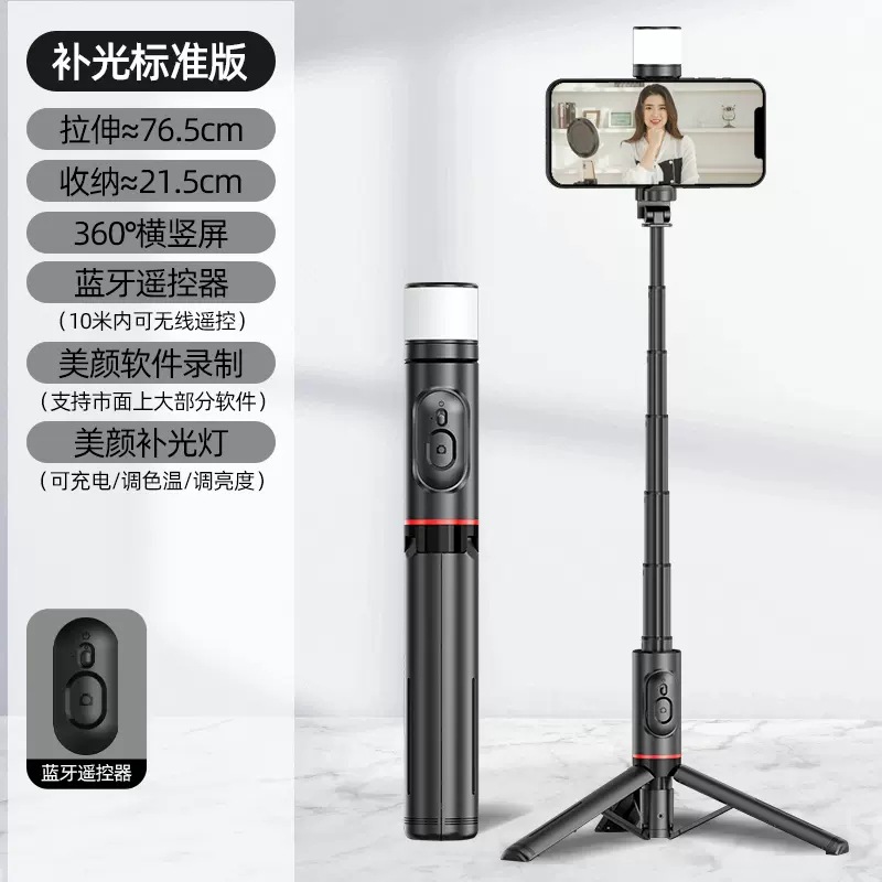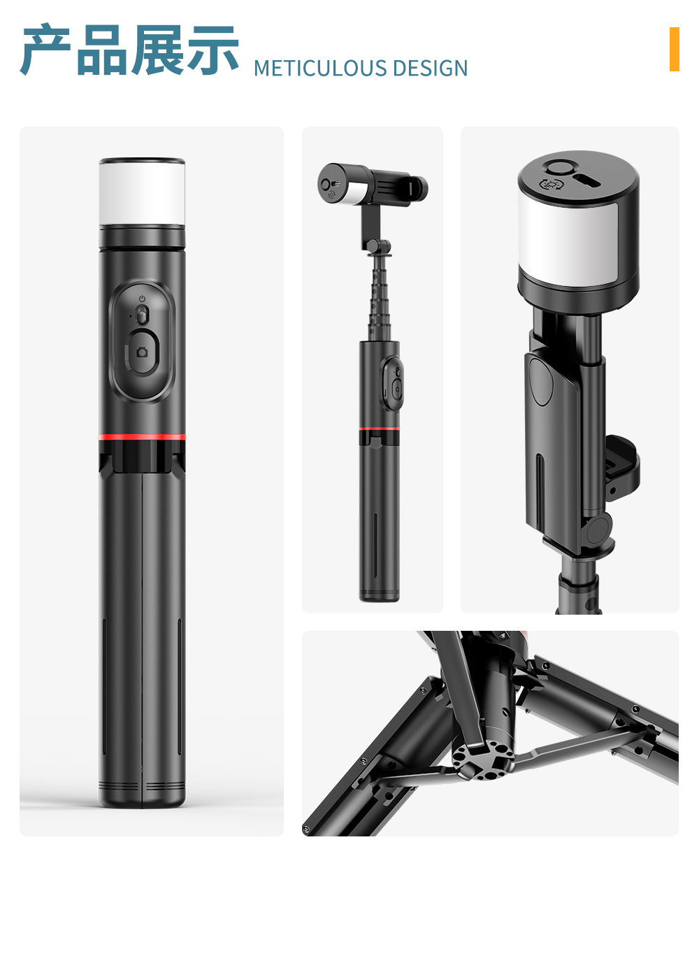• Q12S 히든 필 라이트 셀카 스틱 블랙 (알루미늄 합금)
