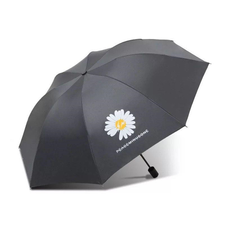삼중 자동 검정 고무 선 스크린 차양 이중 용도 접이식 태양 우산 로고 광고 우산