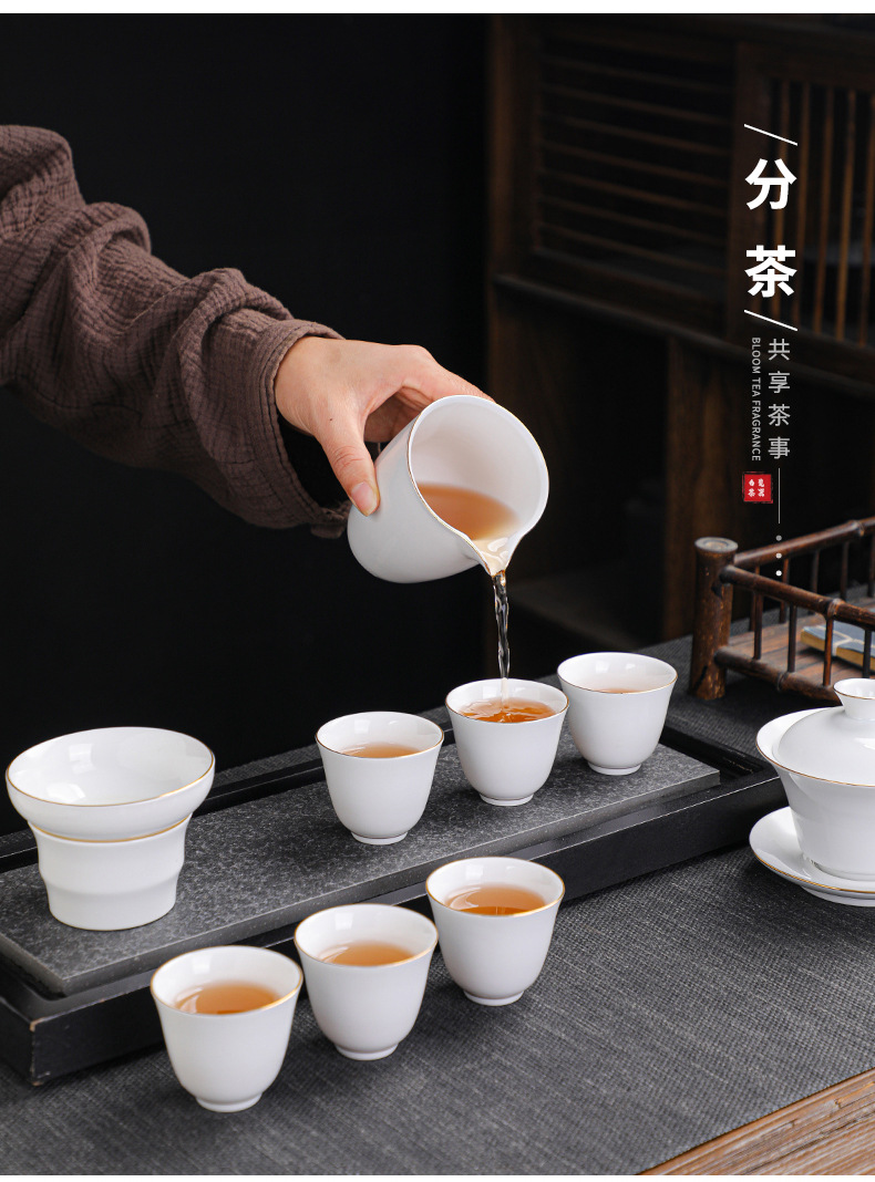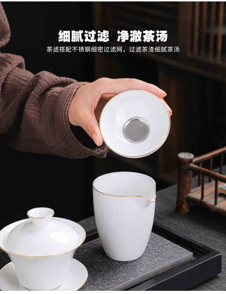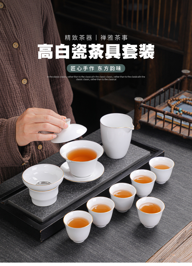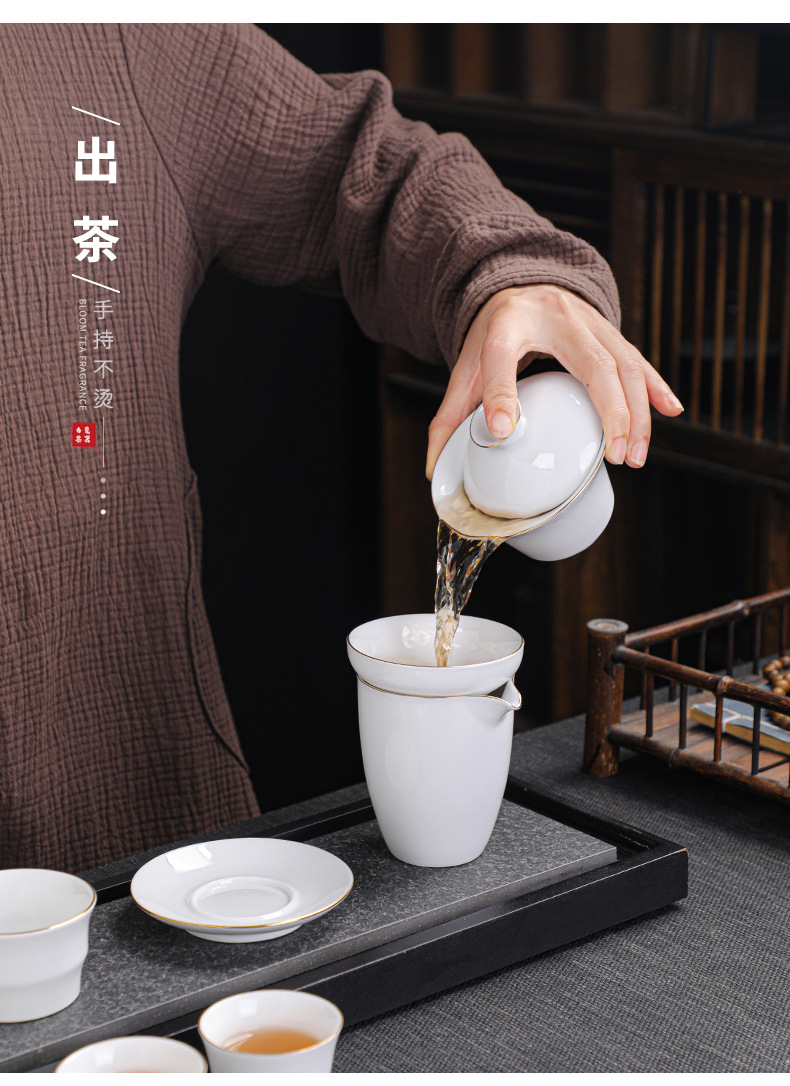 Zhuofang 세라믹 커버 그릇 세트 차 스웨이드 옥 화이트 도자기 쿵푸 차 세트 세트 선물 은행 비즈니스 선물 로고