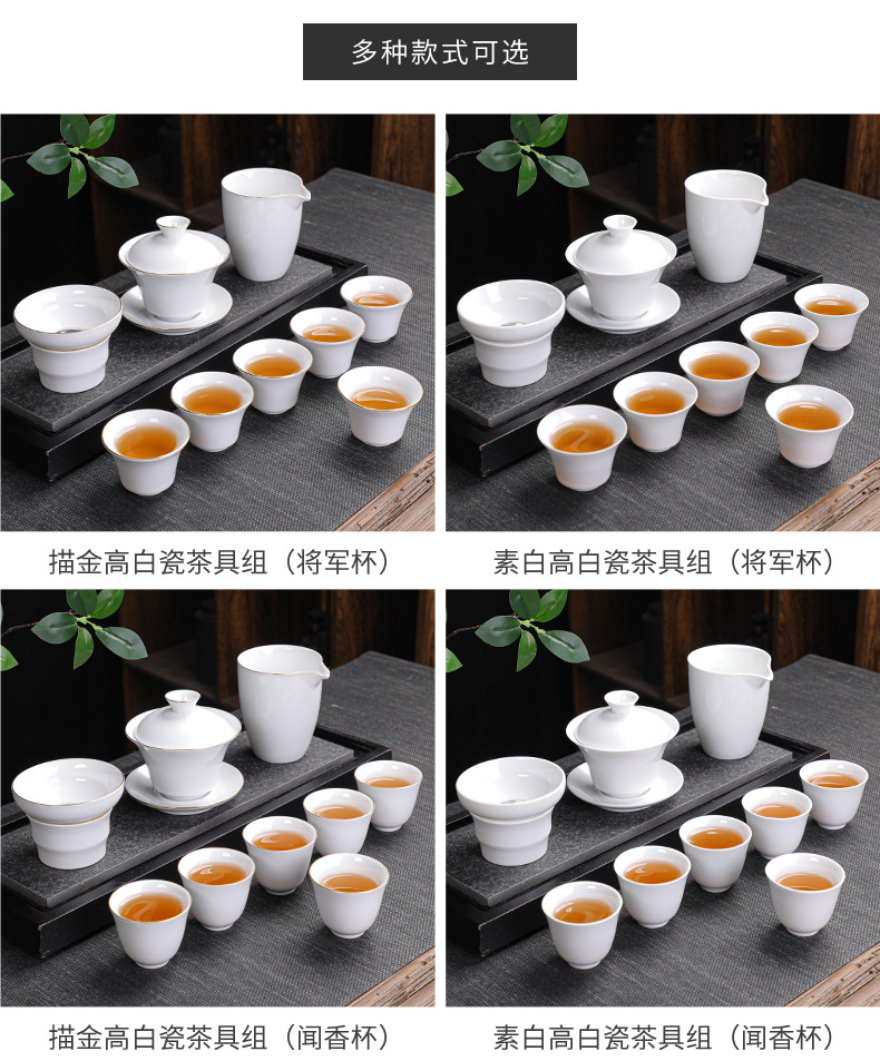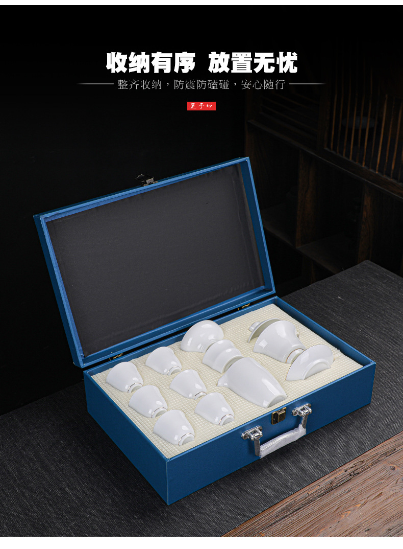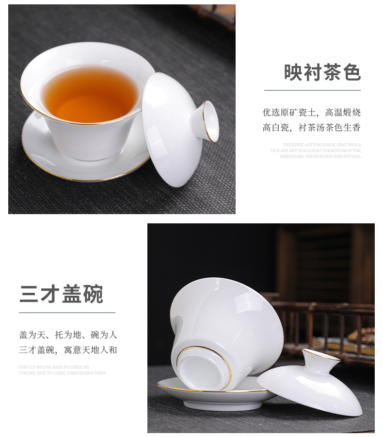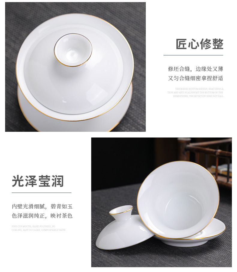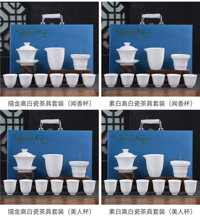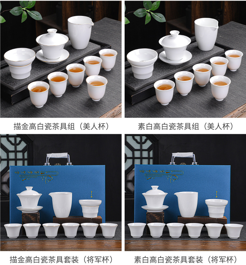 Zhuofang 세라믹 커버 그릇 세트 차 스웨이드 옥 화이트 도자기 쿵푸 차 세트 세트 선물 은행 비즈니스 선물 로고스토어 가기