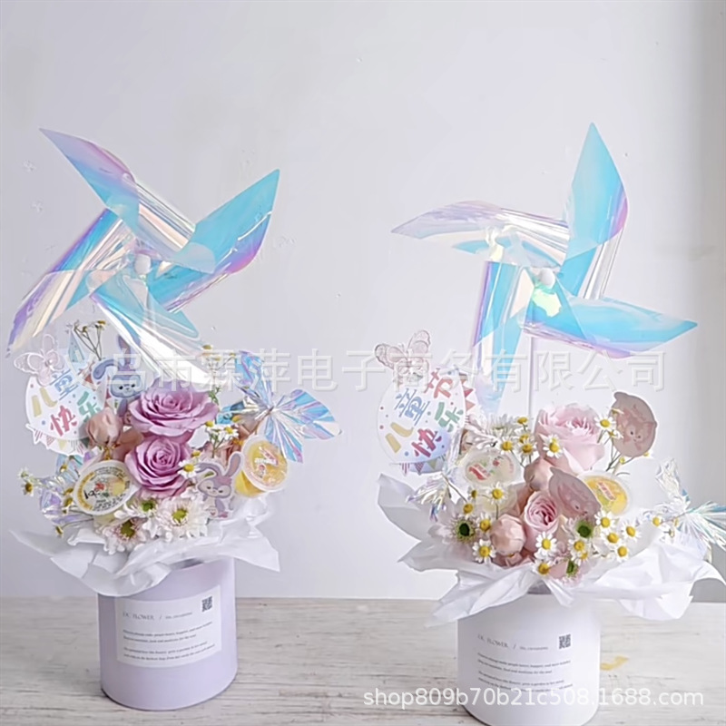 61 어린이 날 다채로운 레이저 풍차 정원 교실 작은 빨간 책 배열 유치원 꽃집 밀고 야시장