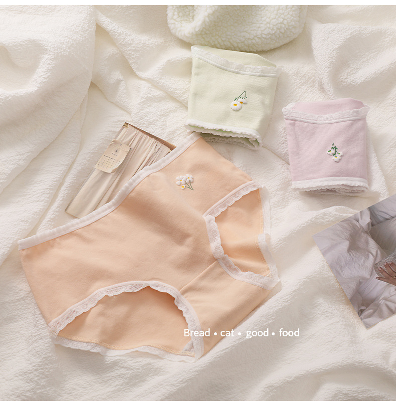 원래 소녀 마카롱 컬러 프린트 미드 웨이스트 코튼 속옷 편안한 항균 코튼 가랑이 여성용 브리프스토어 가기