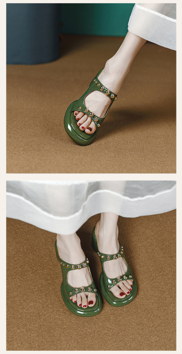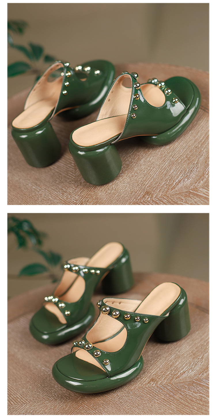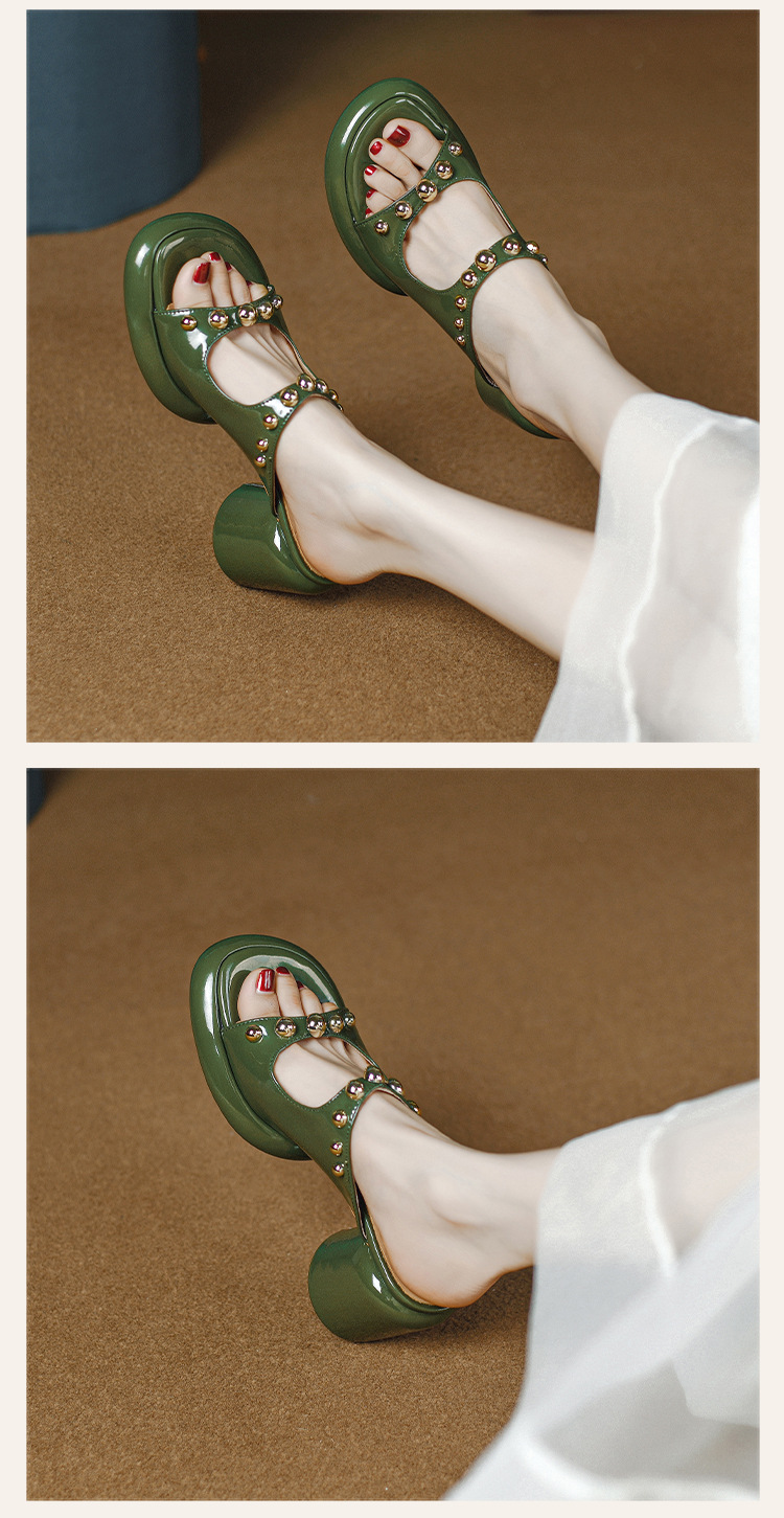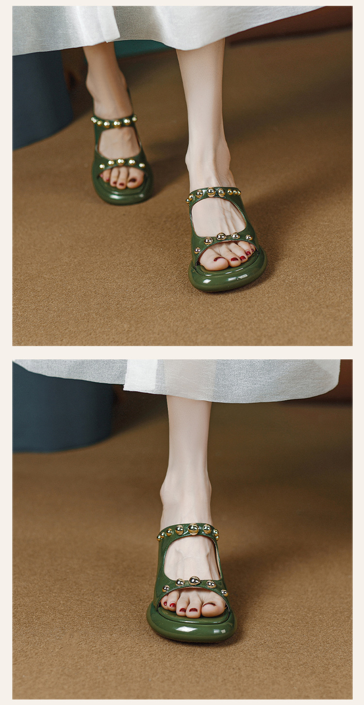 오픈 토 블록 힐 아우터 슬리퍼 여성용 모든 매치 페어리 슬라이드 2023 새로운 여름 리벳 하이힐 패션 샌들
