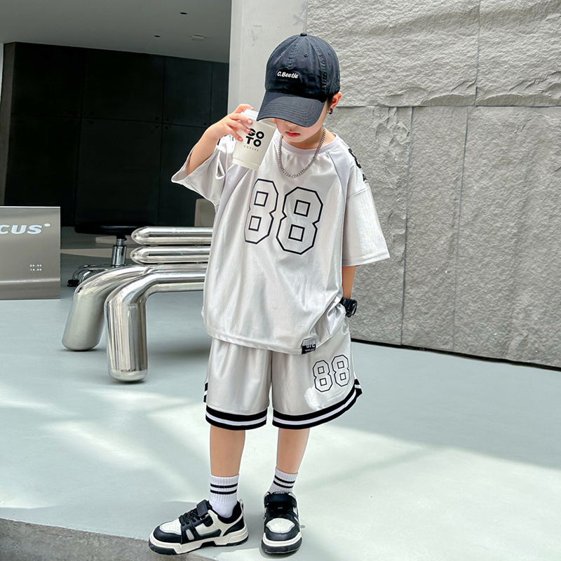 트렌디한 아동 농구복 세트 여름복 2026 신상 남아 유니폼 중대형 아동 운동복 투피스 여름스토어 가기