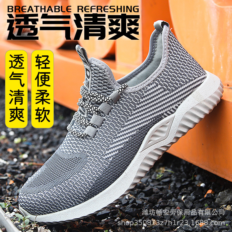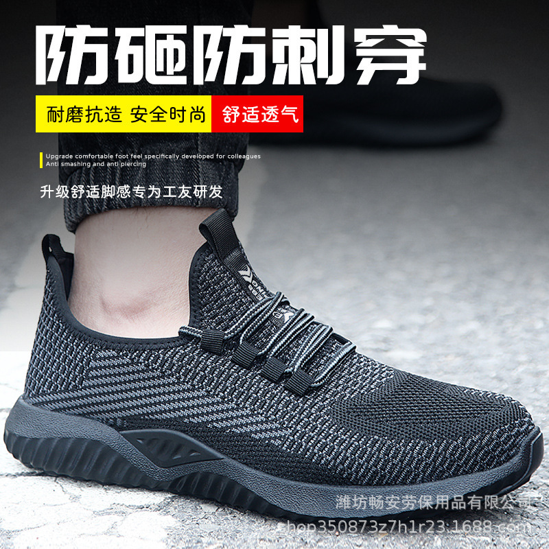 크로스 보더 노동 보호 신발 남성용 여름 비행 짠 통기성 탈취제 안티 스매싱 안티 피어싱 경량 바닥 내마모성 미끄럼 방지 작업 신발스토어 가기