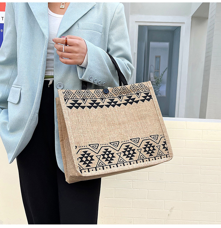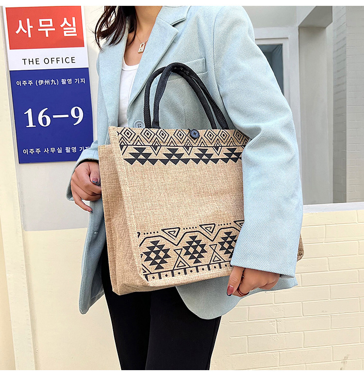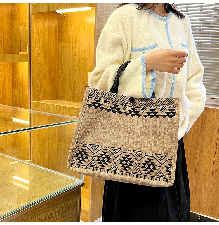 2023 한국식 대용량 노출 소녀 유행 어깨 쇼핑백 새로운 여성 가방 통근 린넨 핸드백스토어 가기