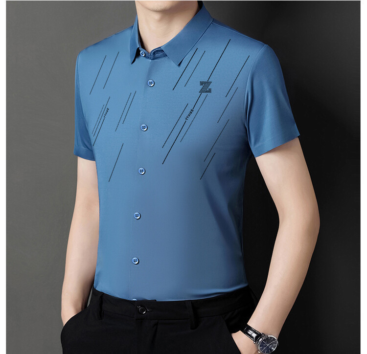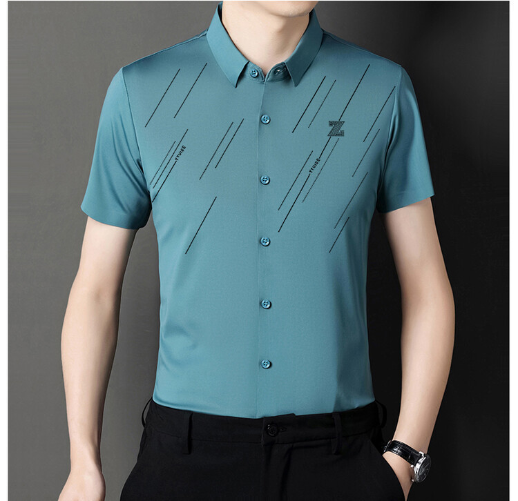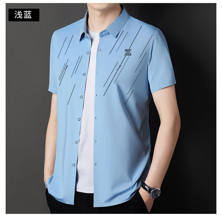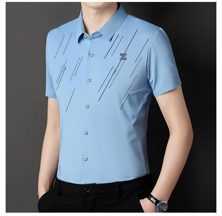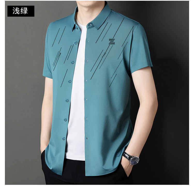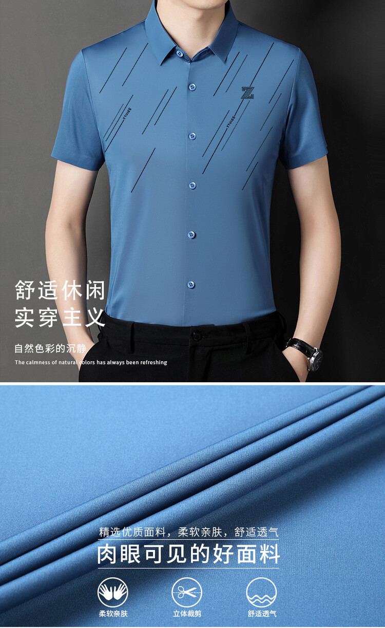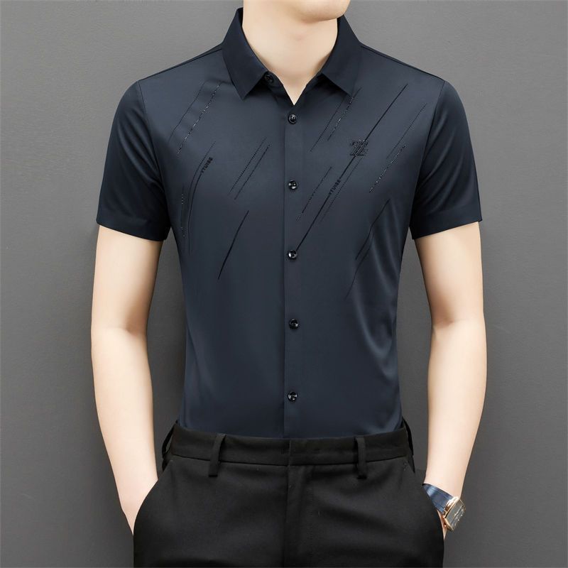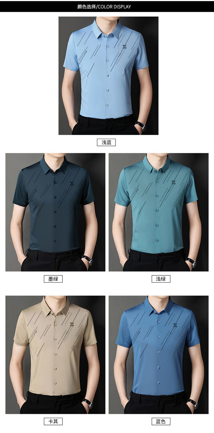 여름 반팔 새로운 남자의 원활한 셔츠 젊고 중년의 단색 얇은 패션 캐주얼 셔츠 남자의 머리카락 생성스토어 가기