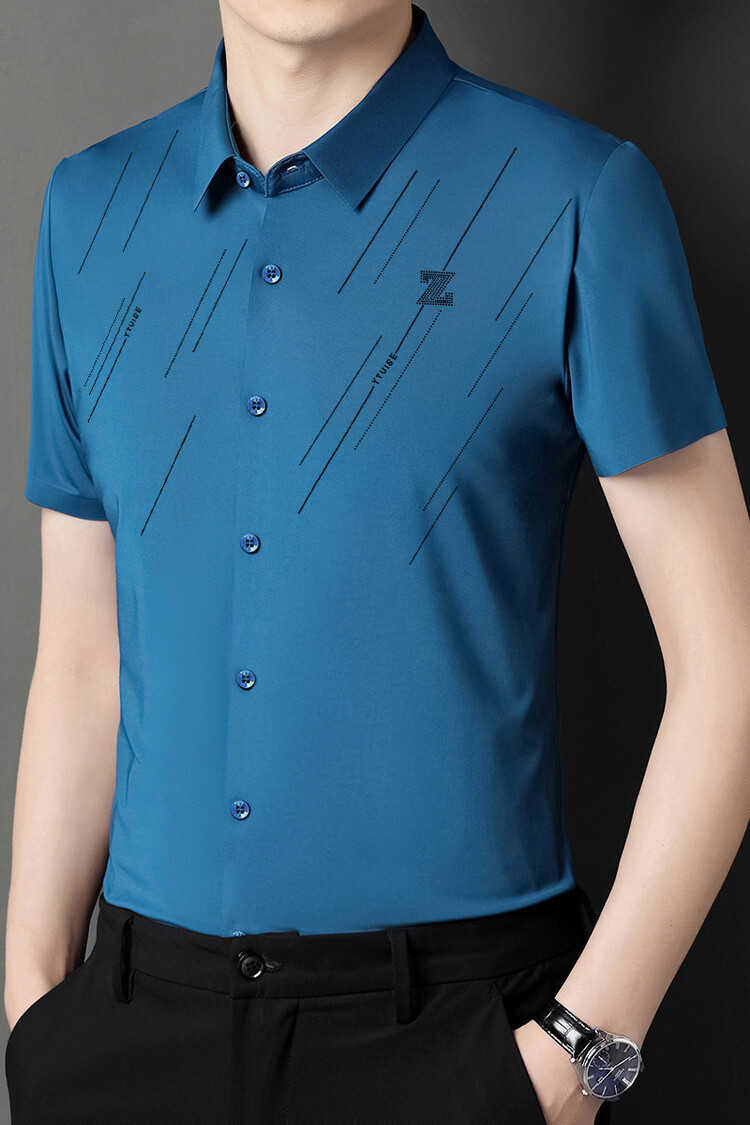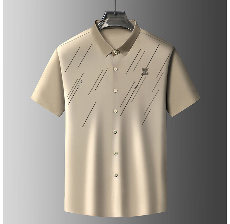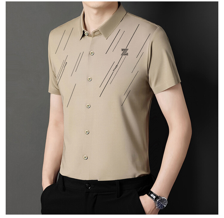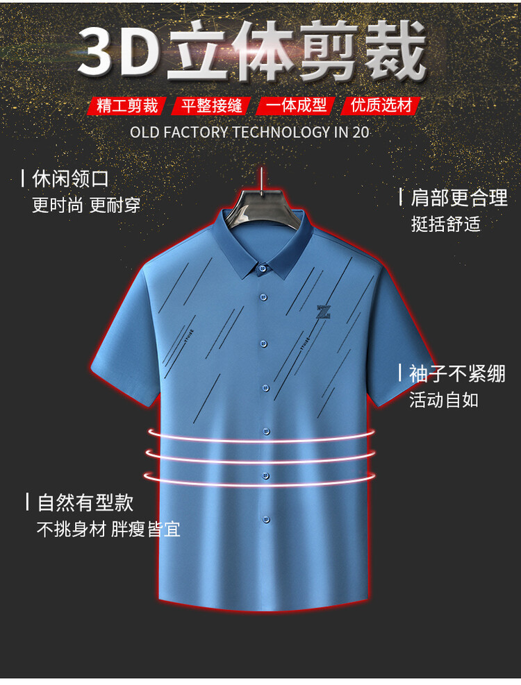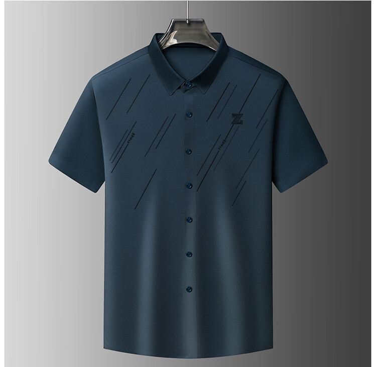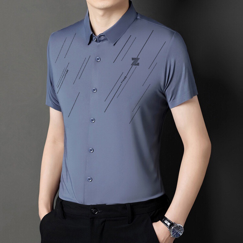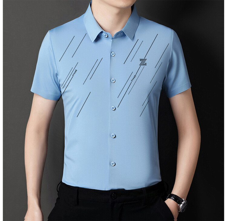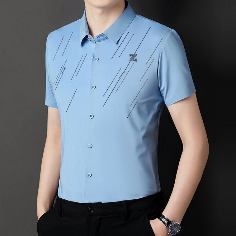 여름 반팔 새로운 남자의 원활한 셔츠 젊고 중년의 단색 얇은 패션 캐주얼 셔츠 남자의 머리카락 생성스토어 가기