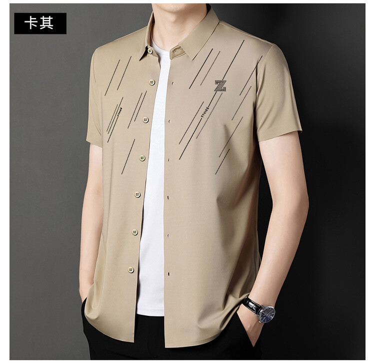 夏季短袖新款男士无痕衬衣中青年纯色薄款时尚休闲衬衫男装代发