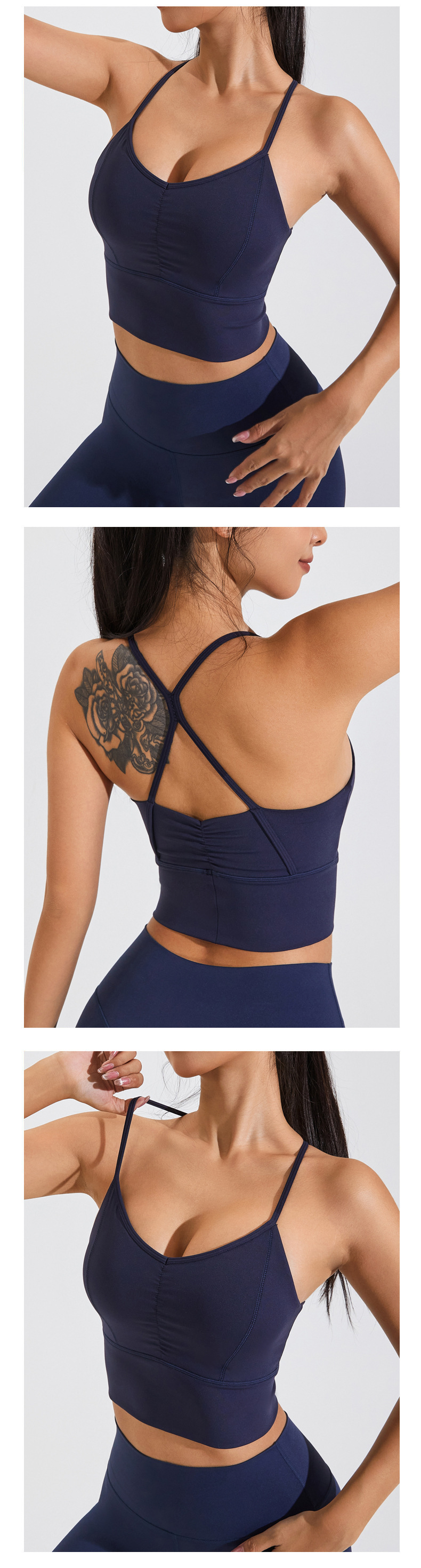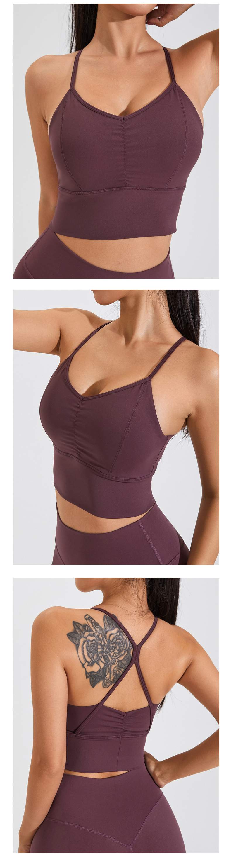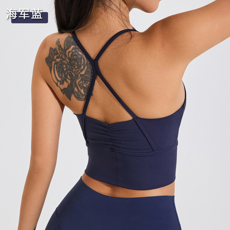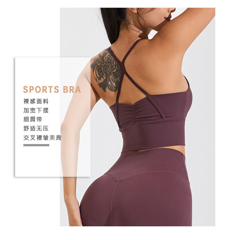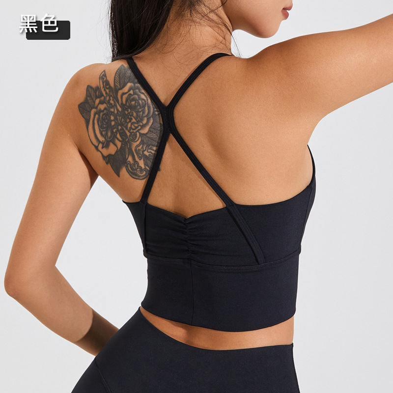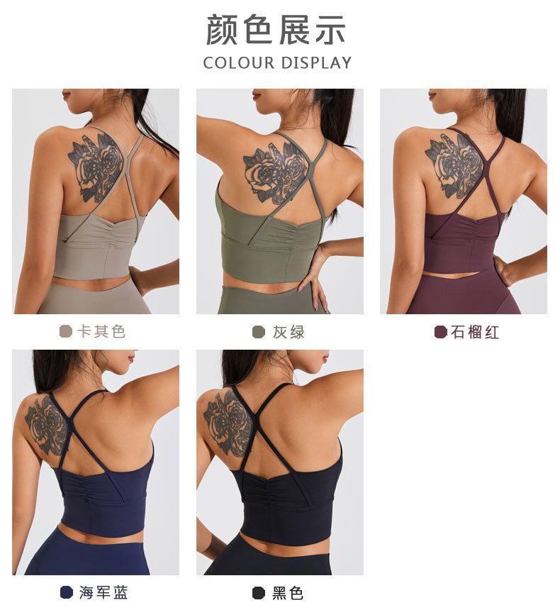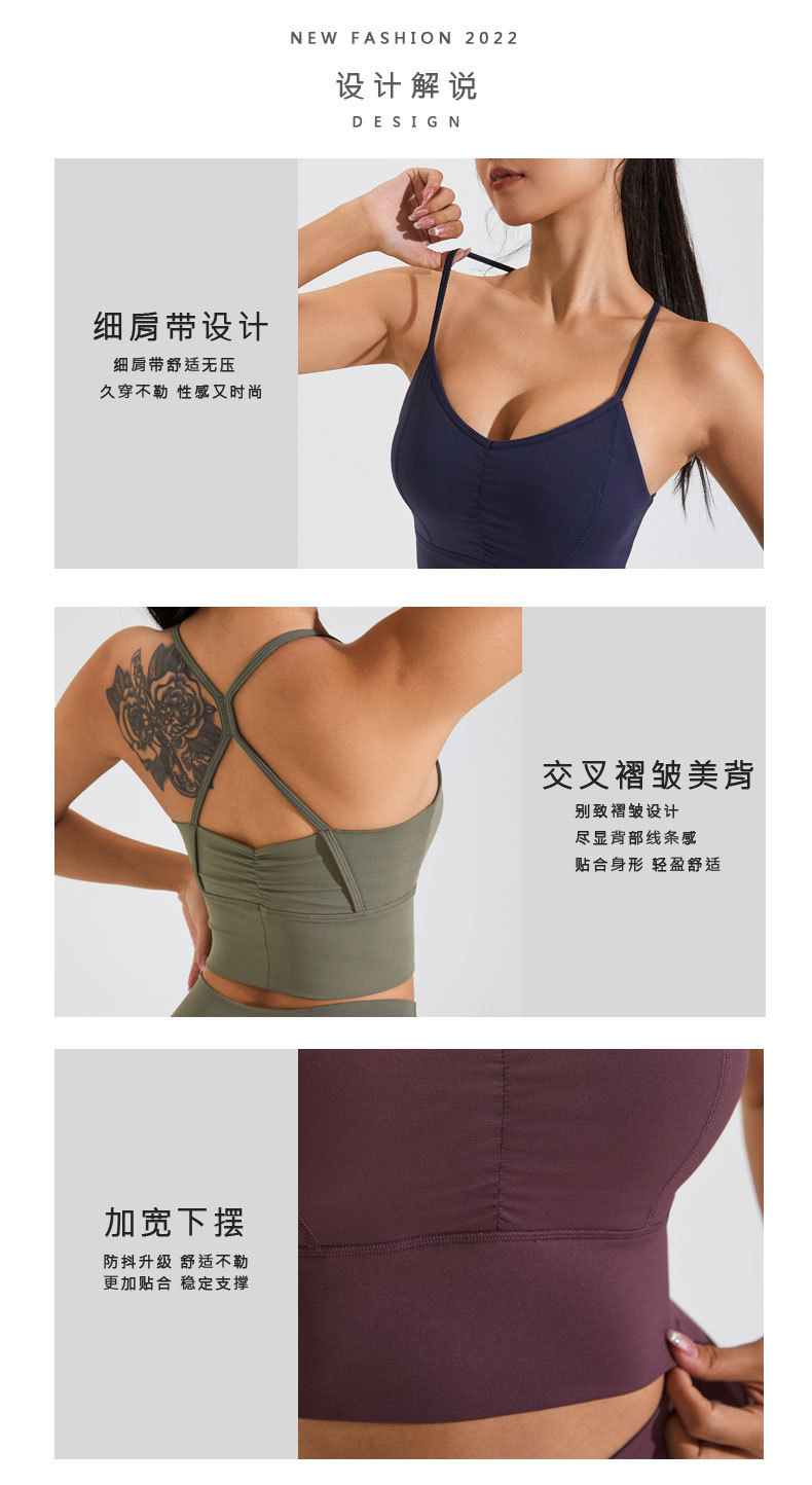 새로운 루루 알몸 스포츠 속옷 크로스 숄더 스트랩 플리츠 요가 브라 푸시 업 충격 방지 러닝 피트니스 조끼