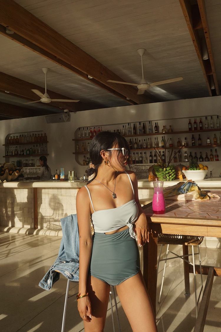 소스 공장 2023 새로운 작은 가슴 섹시한 등이없는 간단한 원피스 수영복 여성 태국 레트로 하이 웨이스트 비키니