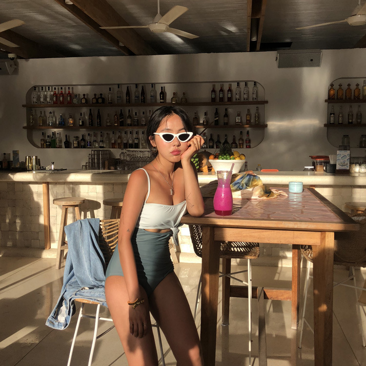 소스 공장 2023 새로운 작은 가슴 섹시한 등이없는 간단한 원피스 수영복 여성 태국 레트로 하이 웨이스트 비키니스토어 가기