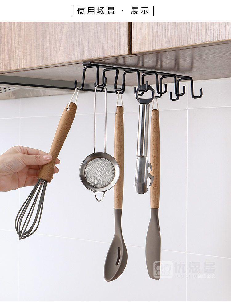 [] 크리 에이 티브 이중 열 후크 교수형 컵 랙 주방 천공 교수형 캐비닛 주걱 랙 철제 선반 옷장스토어 가기