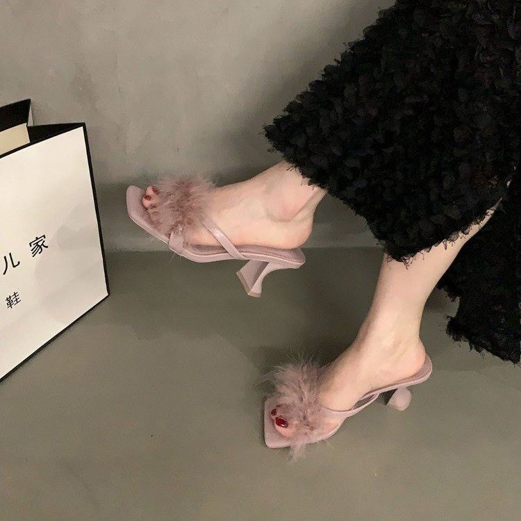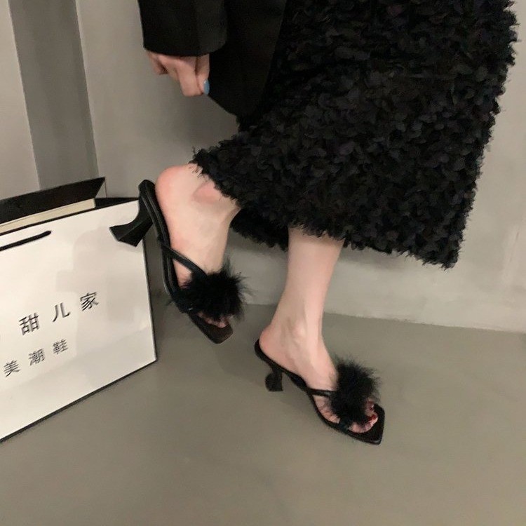 프랑스 틈새 하이 힐 마오 마오 슬리퍼 여성 아우터웨어 2024 새로운 여름 요정 스타일 플립 온 블랙 샌들스토어 가기