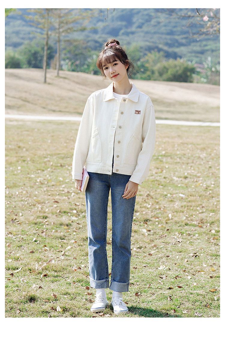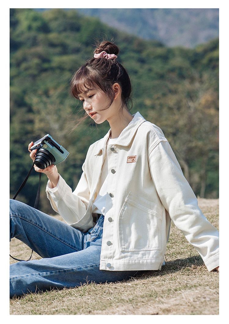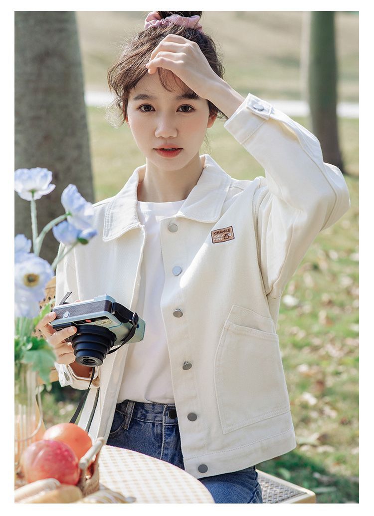 화이트 데님 재킷 여성용 2025 봄 가을 신상 레트로 홍콩 스타일 워크웨어 재킷 학생용 다용도 긴팔 상의스토어 가기