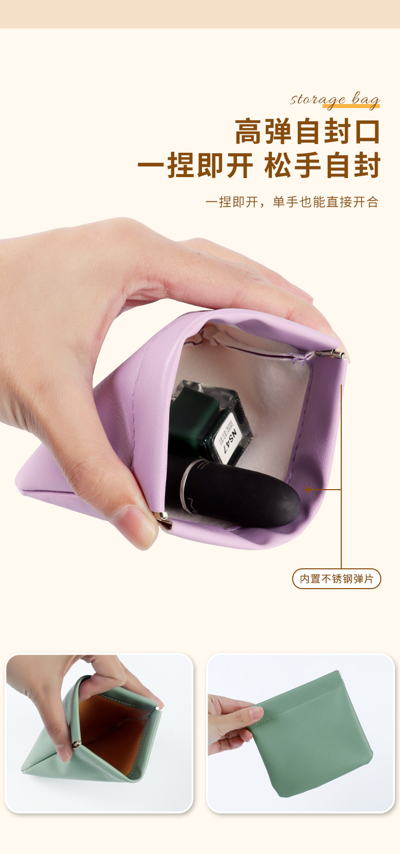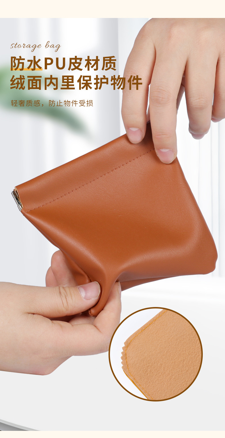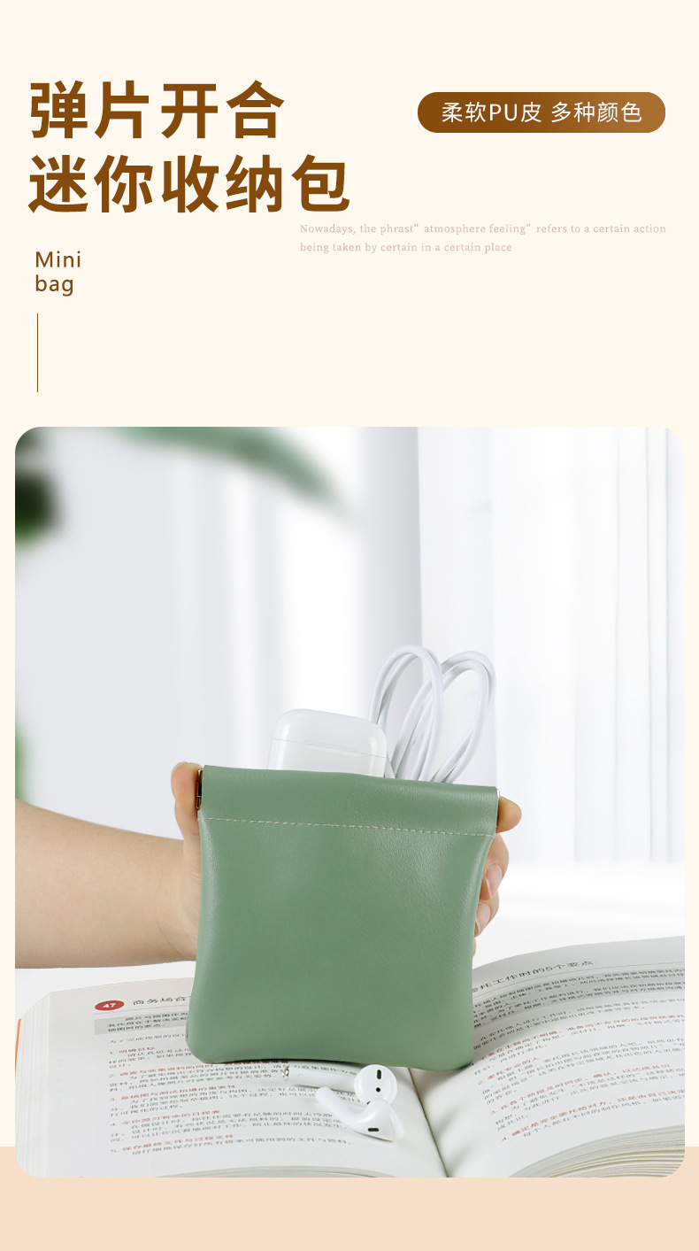 弹片收纳包 pu皮革弹片包 化妆品收纳包 口红收纳 小物件耳机数据线收纳袋