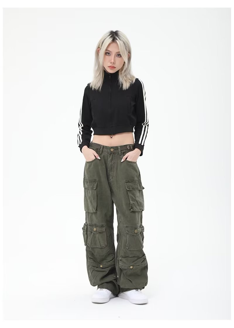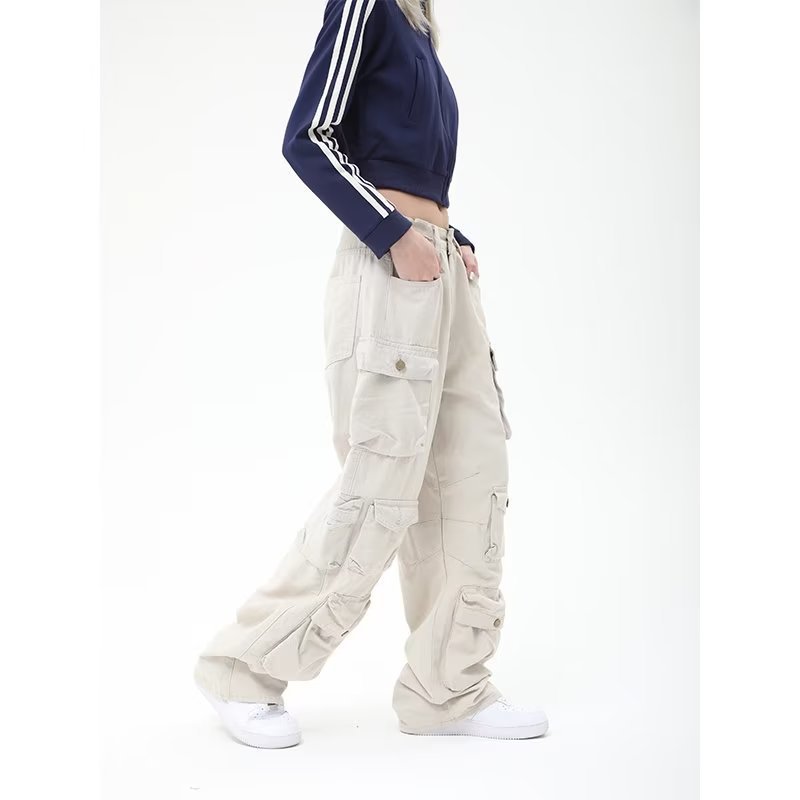 아메리칸 스타일 레트로 멀티 포켓 툴링 스트레이트 팬츠 여성용 스트리트 힙합 루즈한 모든 매치 캐주얼 걸레 팬츠