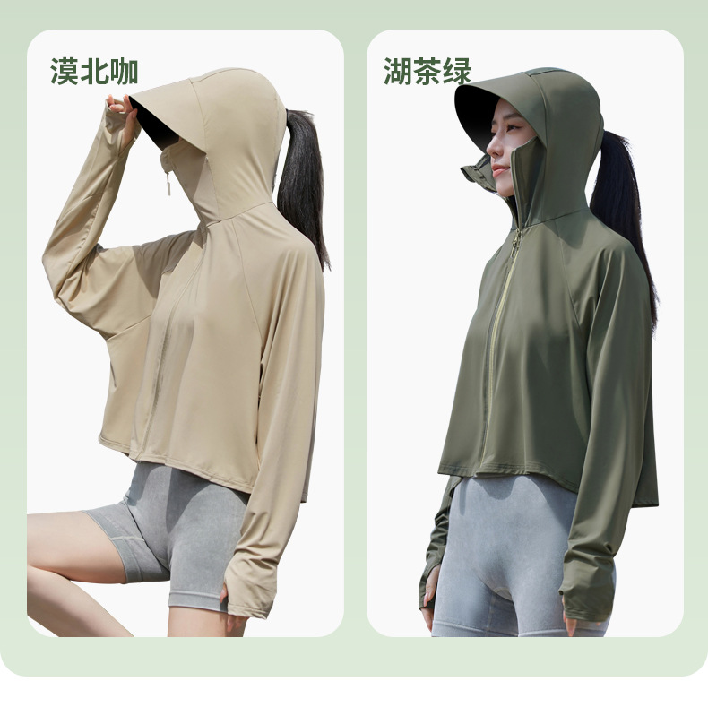 목도리 태양 보호 의류 여성 여름 2023 새로운 UV 보호 블랙 접착 태양 보호 셔츠 아이스 실크 태양 보호 의류 사이클링 블라우스스토어 가기