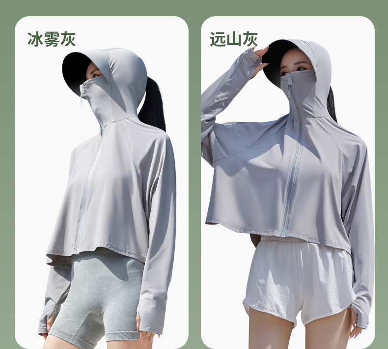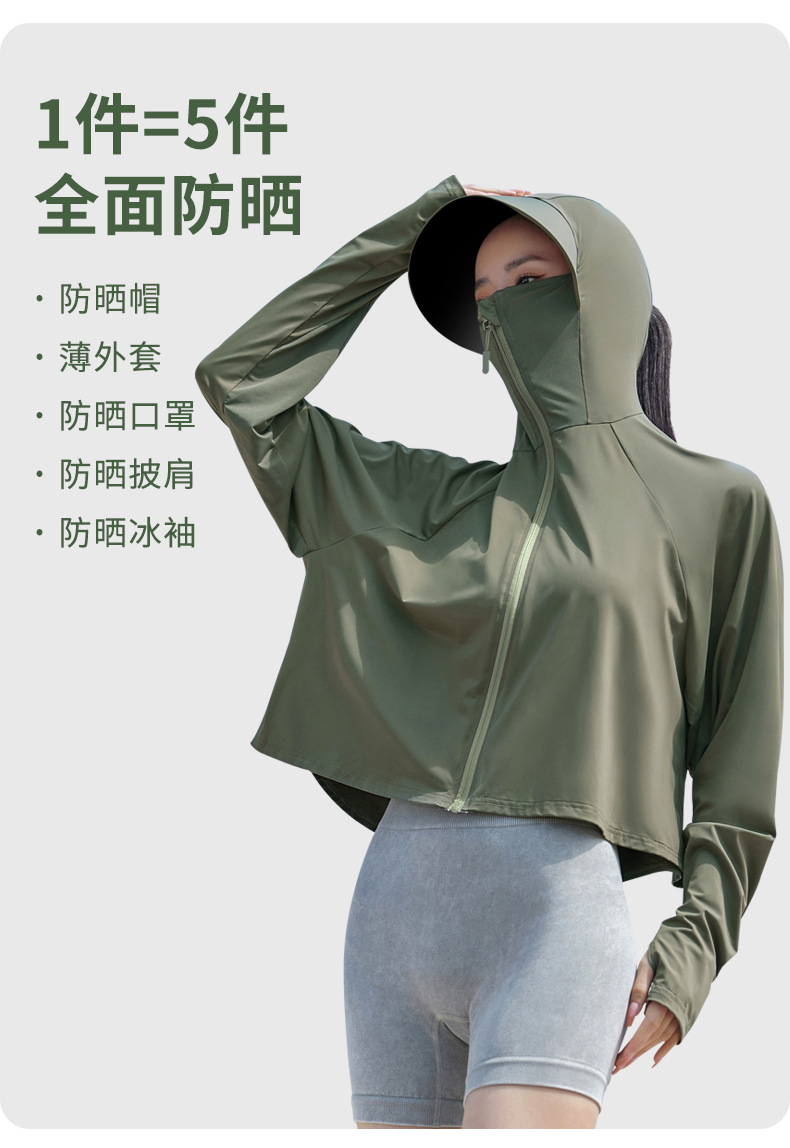 목도리 태양 보호 의류 여성 여름 2023 새로운 UV 보호 블랙 접착 태양 보호 셔츠 아이스 실크 태양 보호 의류 사이클링 블라우스