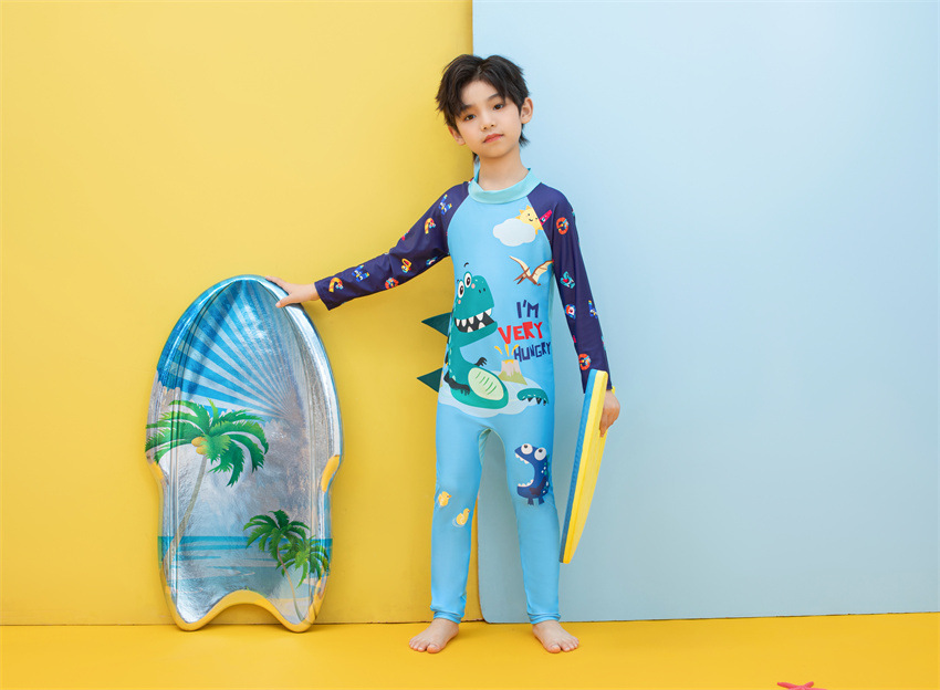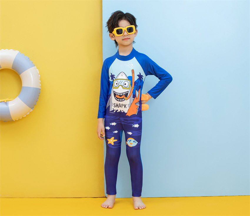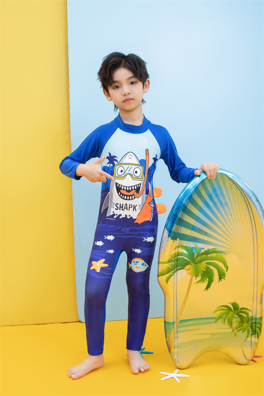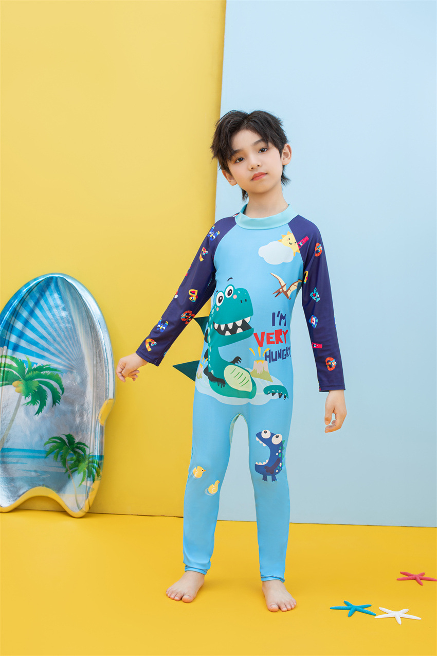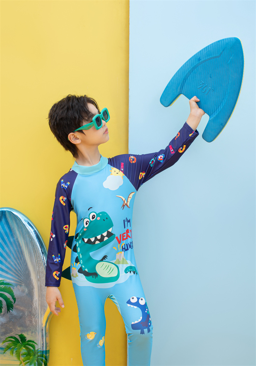 소년을위한 긴팔 자외선 차단제 어린이 수영복 작은 큰 원피스 아기 만화 수영 트렁크 빠른 건조 수영 세트 서핑 세트스토어 가기