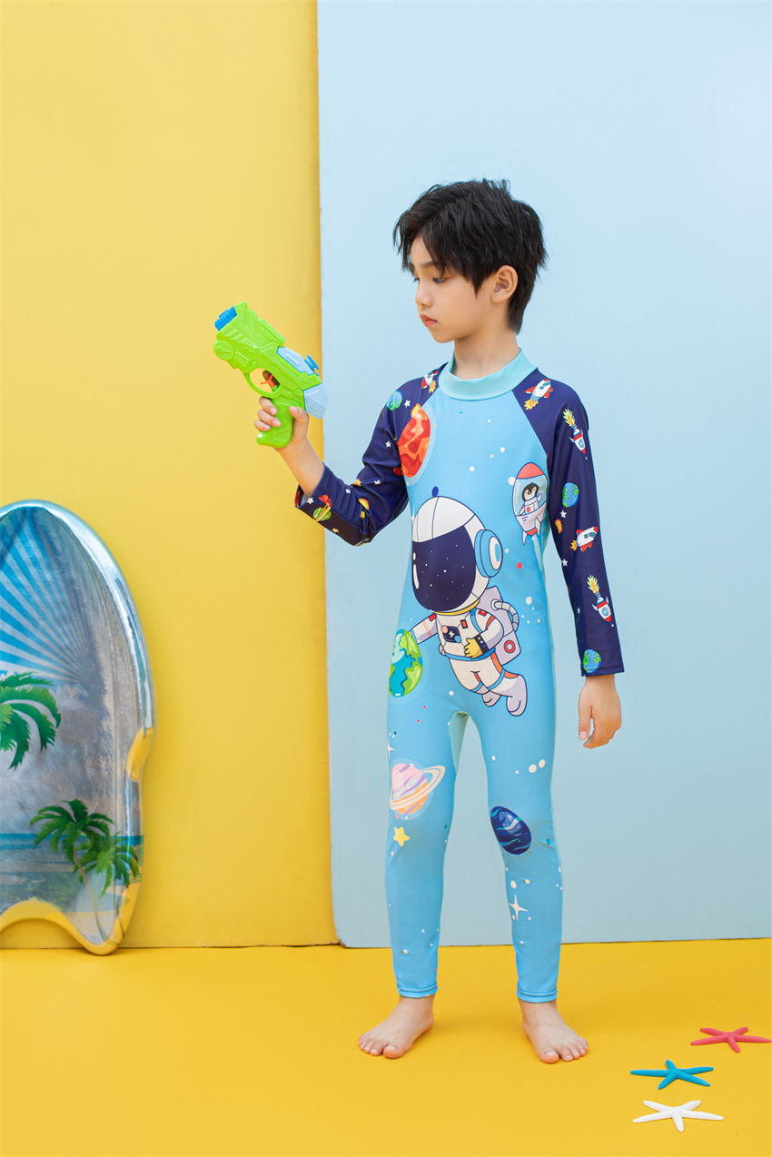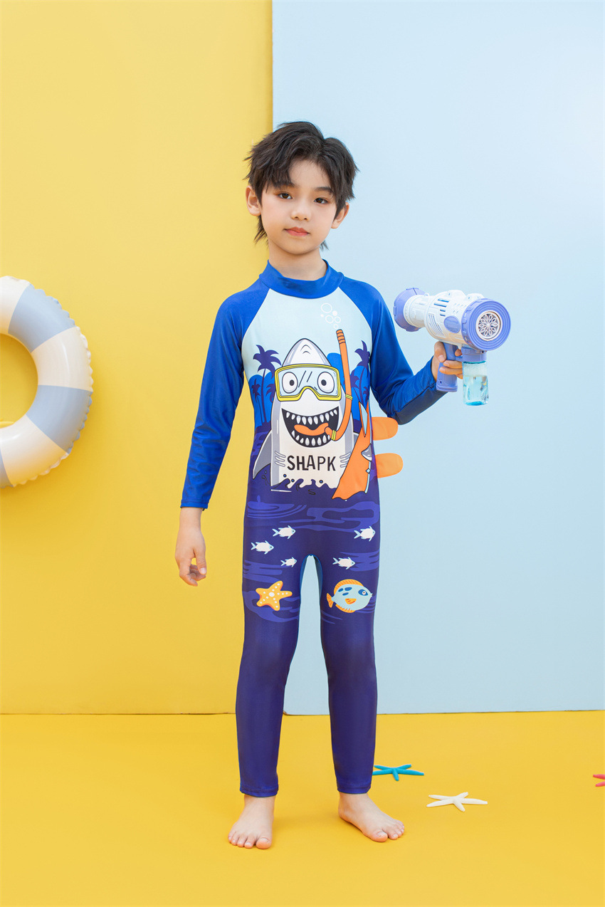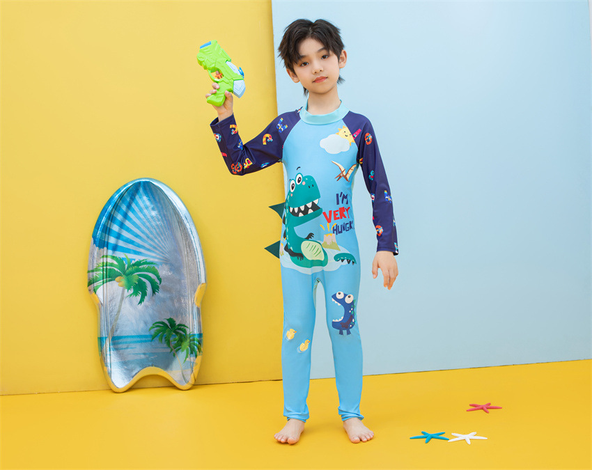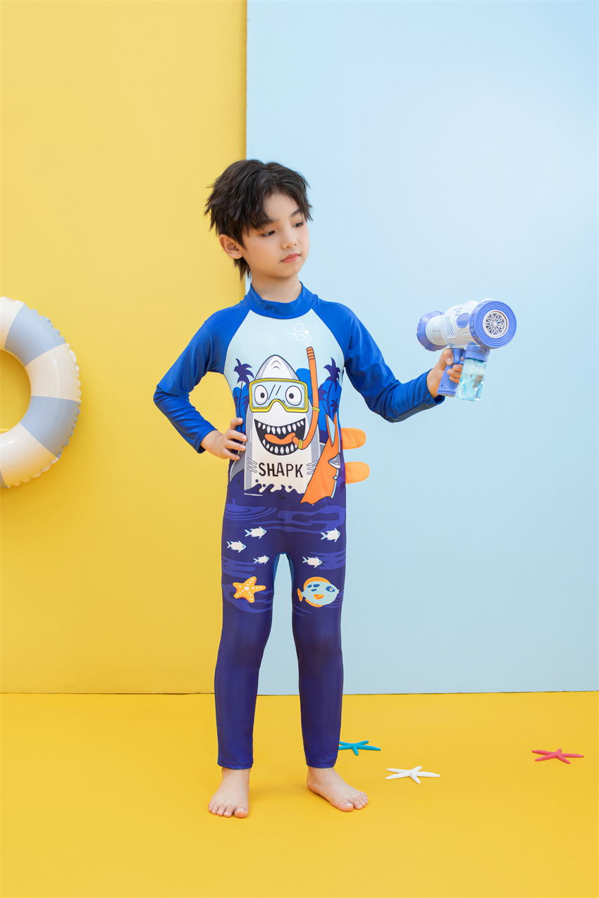 소년을위한 긴팔 자외선 차단제 어린이 수영복 작은 큰 원피스 아기 만화 수영 트렁크 빠른 건조 수영 세트 서핑 세트스토어 가기