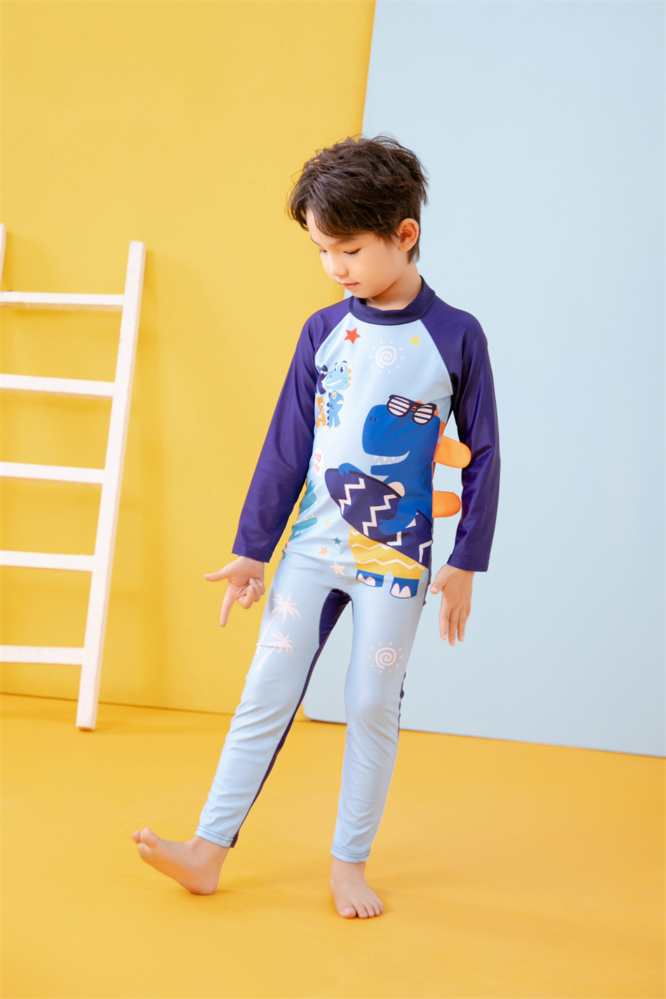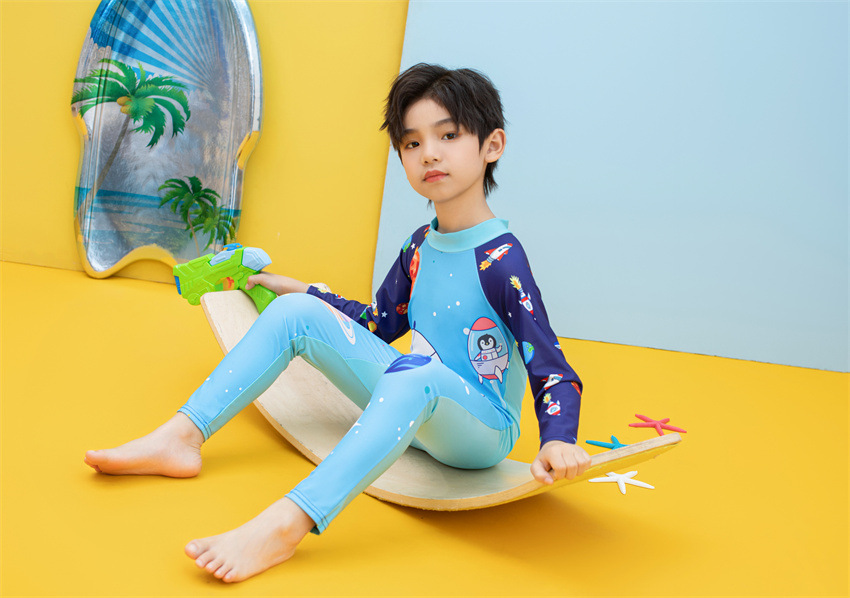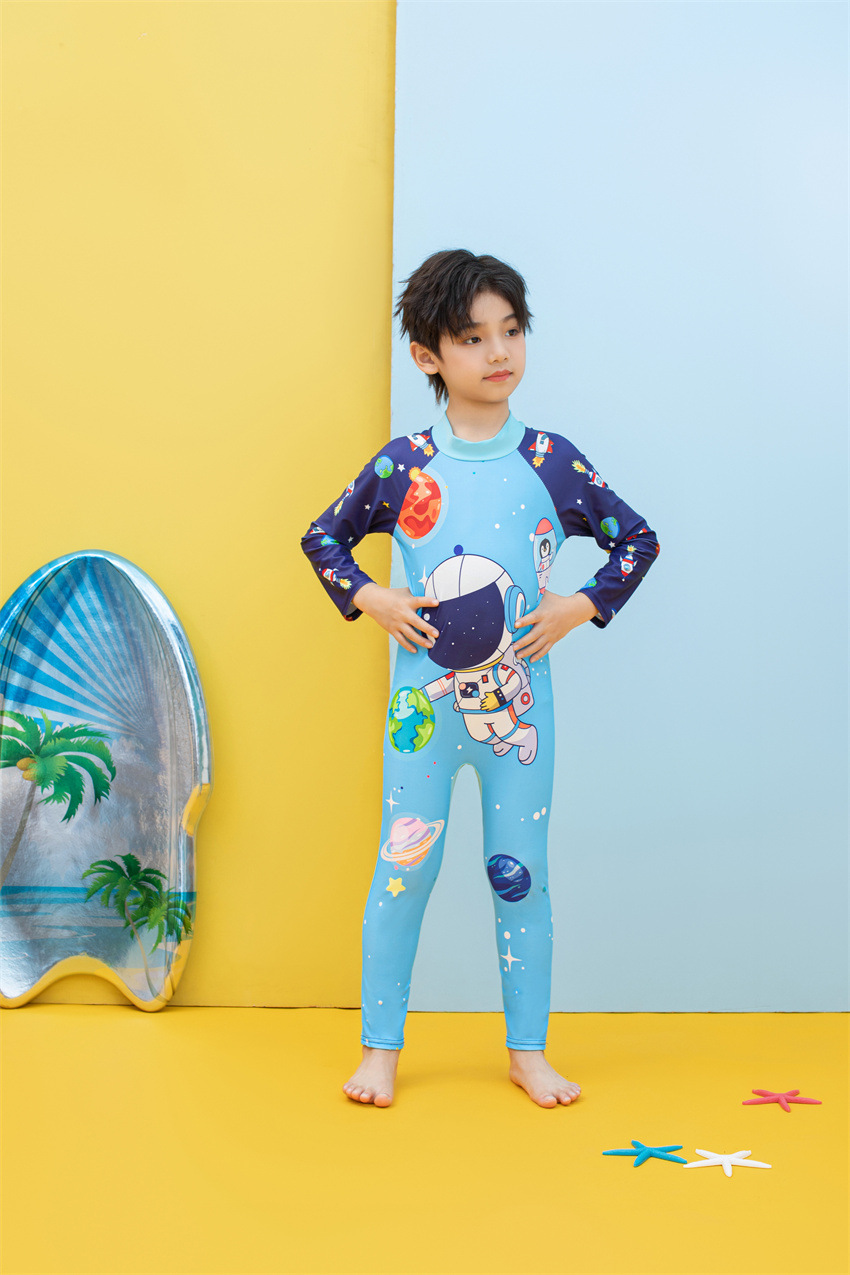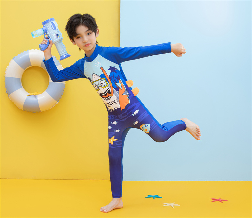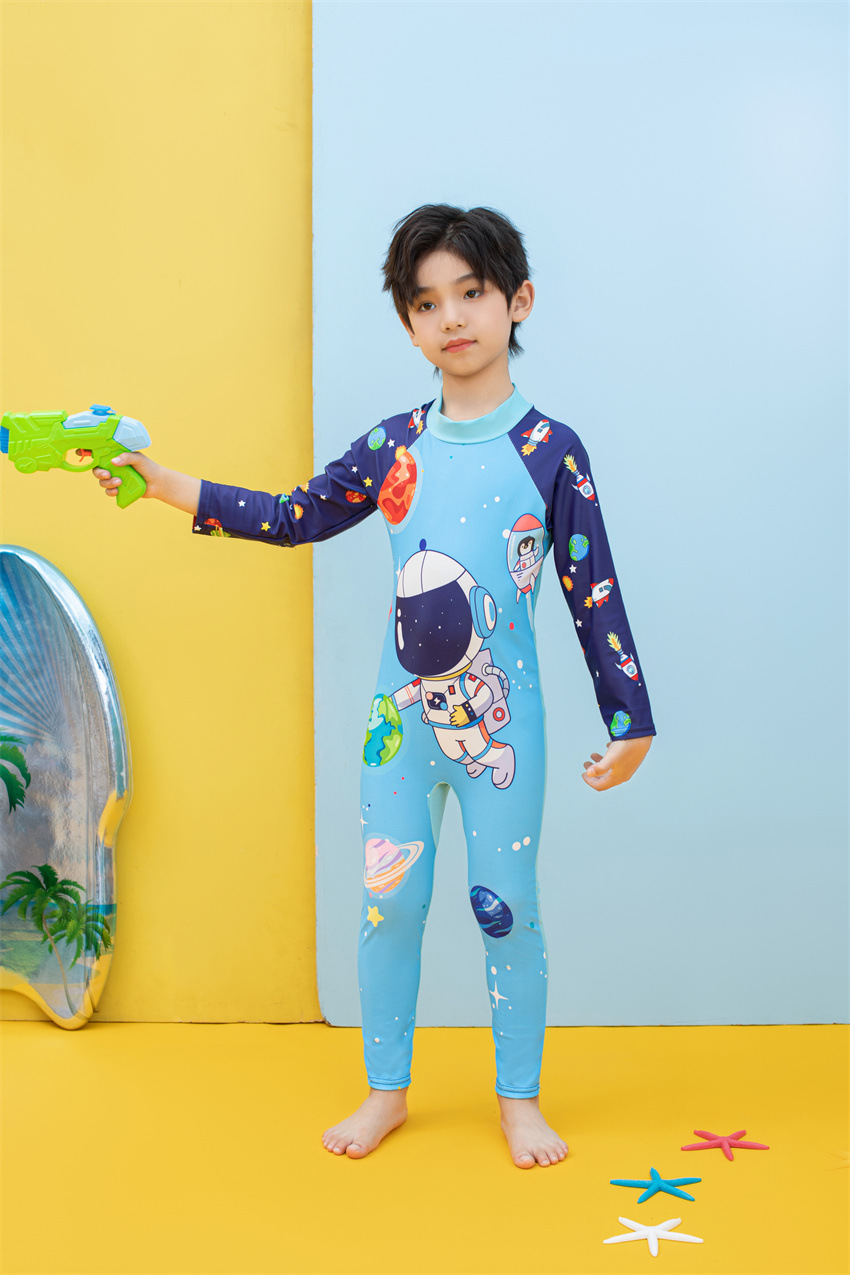 소년을위한 긴팔 자외선 차단제 어린이 수영복 작은 큰 원피스 아기 만화 수영 트렁크 빠른 건조 수영 세트 서핑 세트스토어 가기