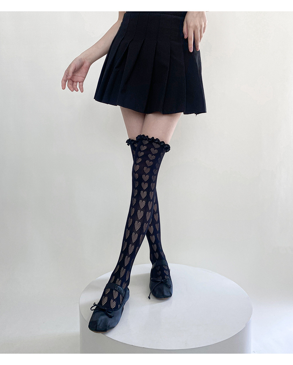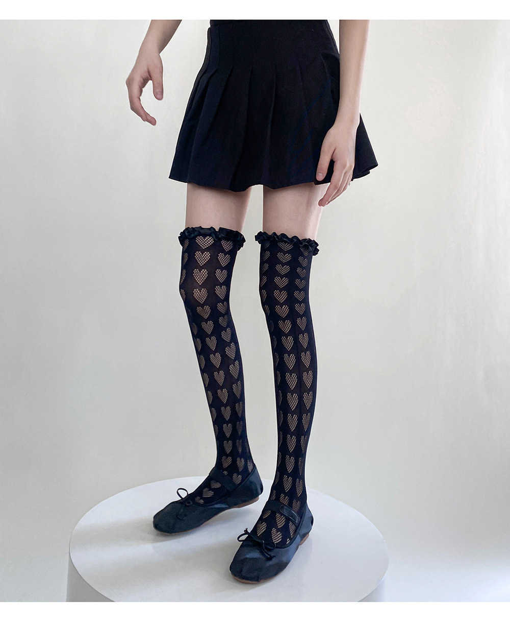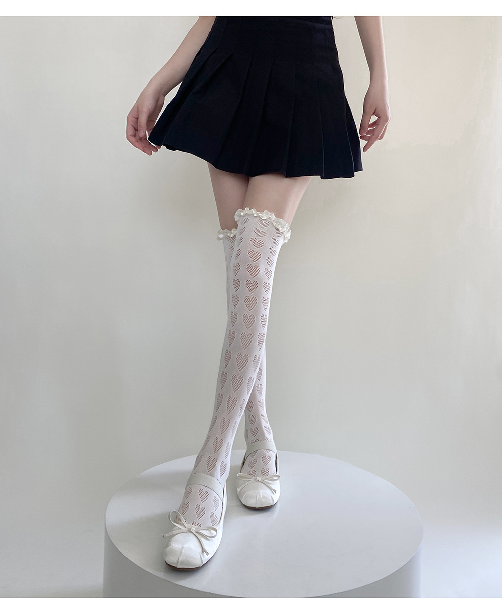 봄과 여름 새틴 레이스 높은 양말 중공 사랑 스타킹 화이트 로리타 무릎 위 스타킹 빈티지 그물 스타킹