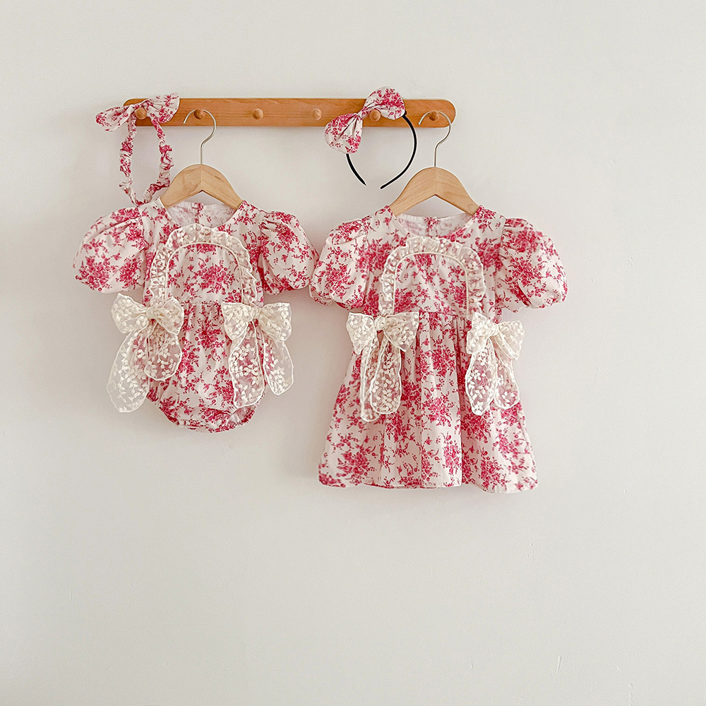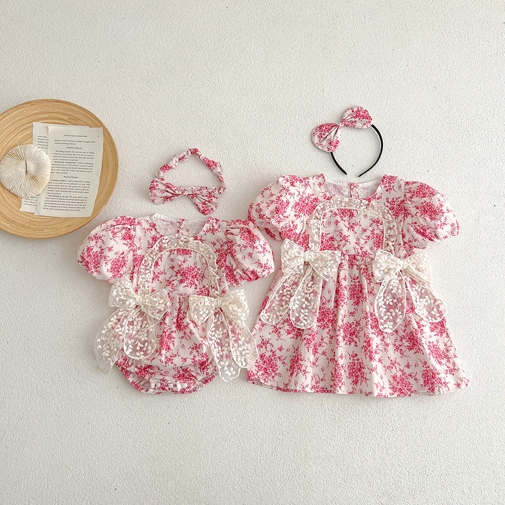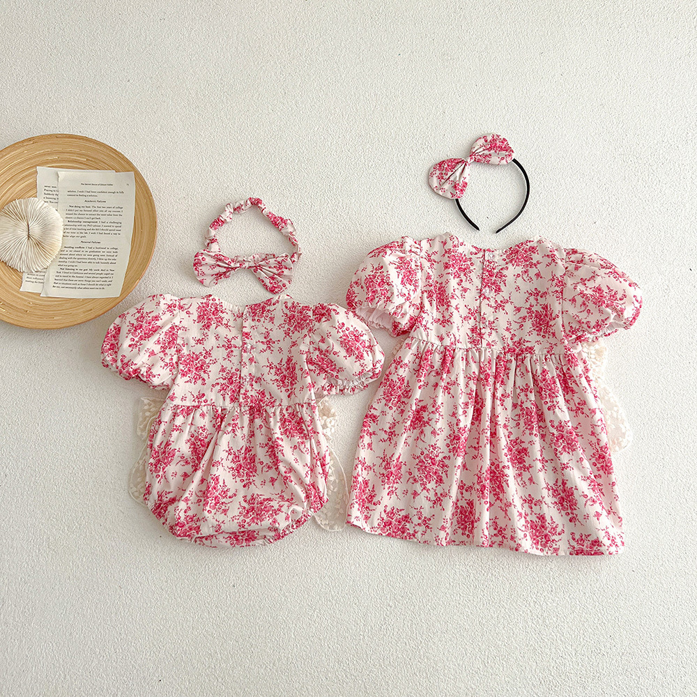 여름용 원피스 아기옷 반팔 여아 원피스 자매룩 한국 스타일 아동복