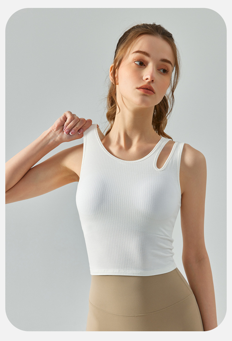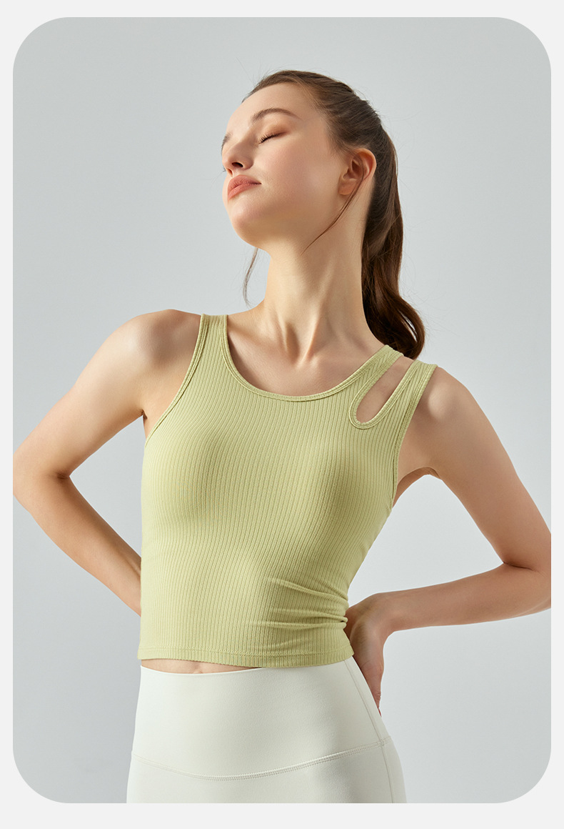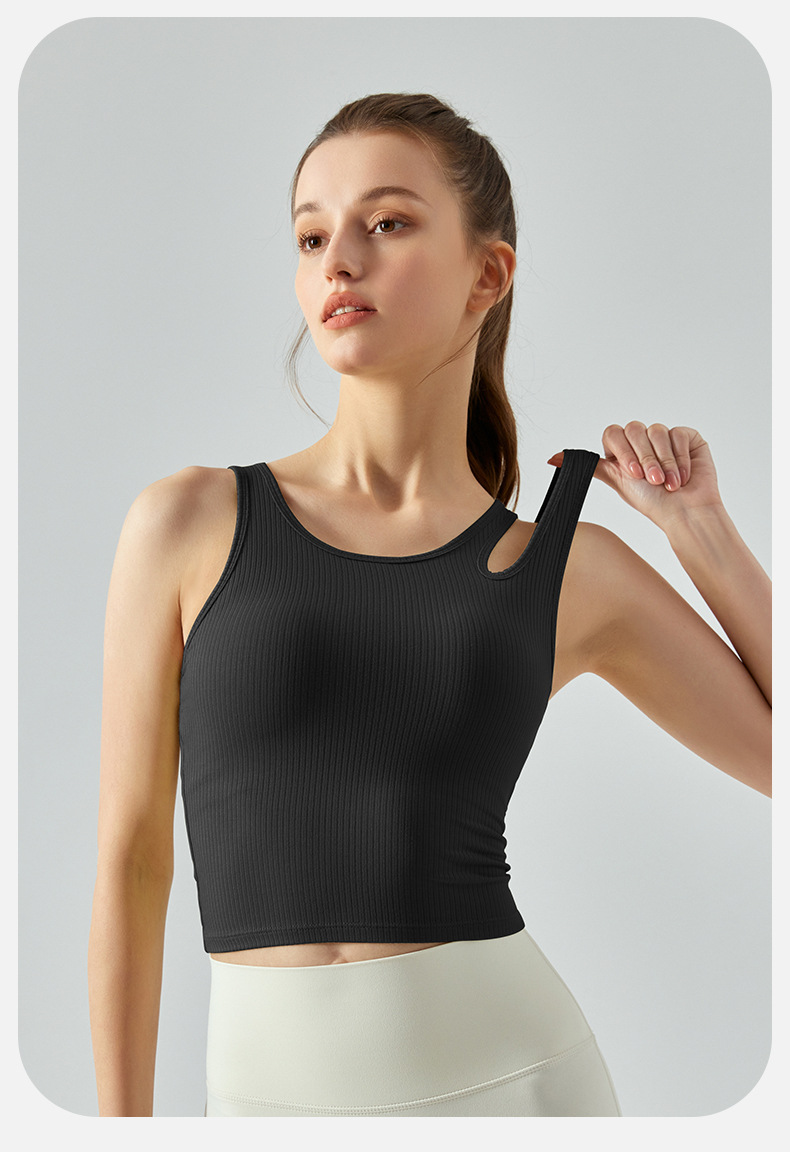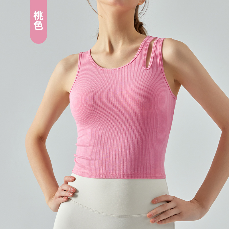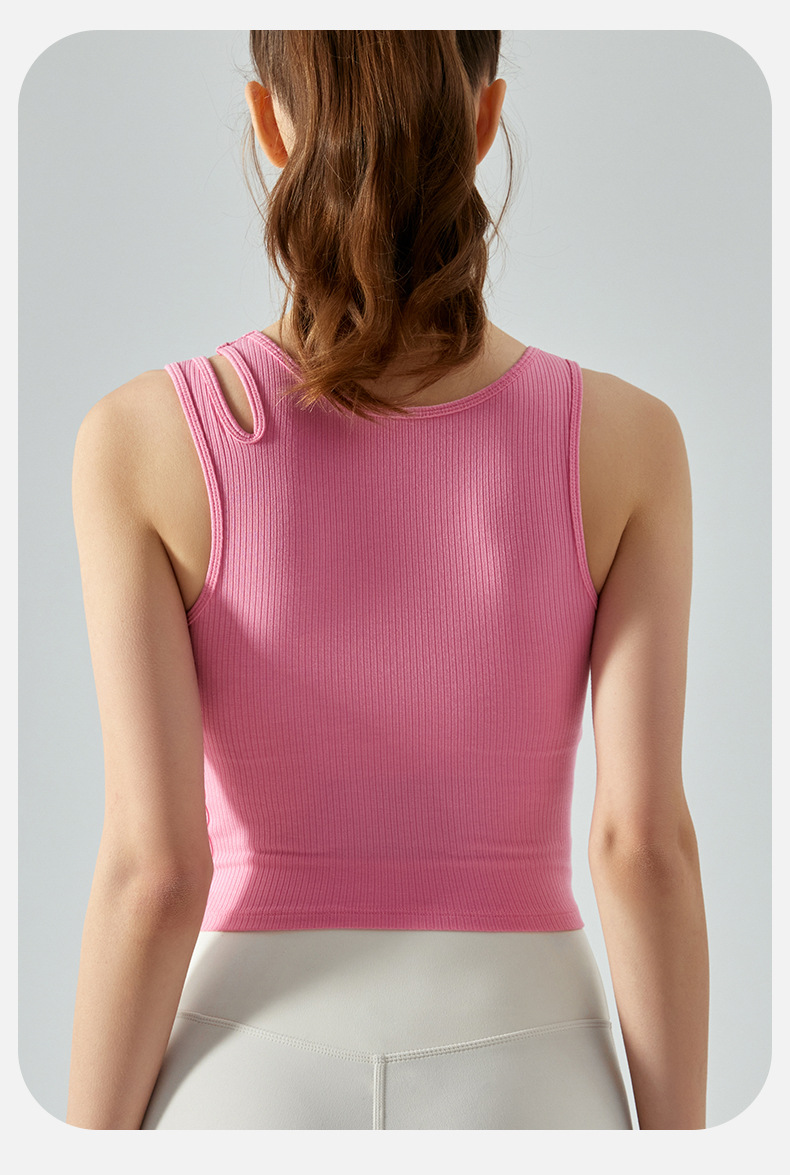 여름 프렌치 핏 스트립 스포츠 조끼 비대칭 중공 어깨 스트랩 필라테스 달리기 피트니스 요가 의류 여성 훈련스토어 가기