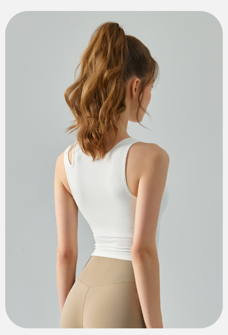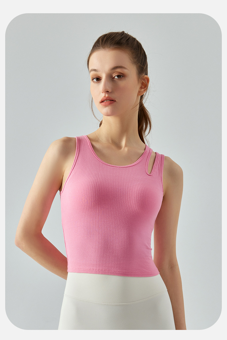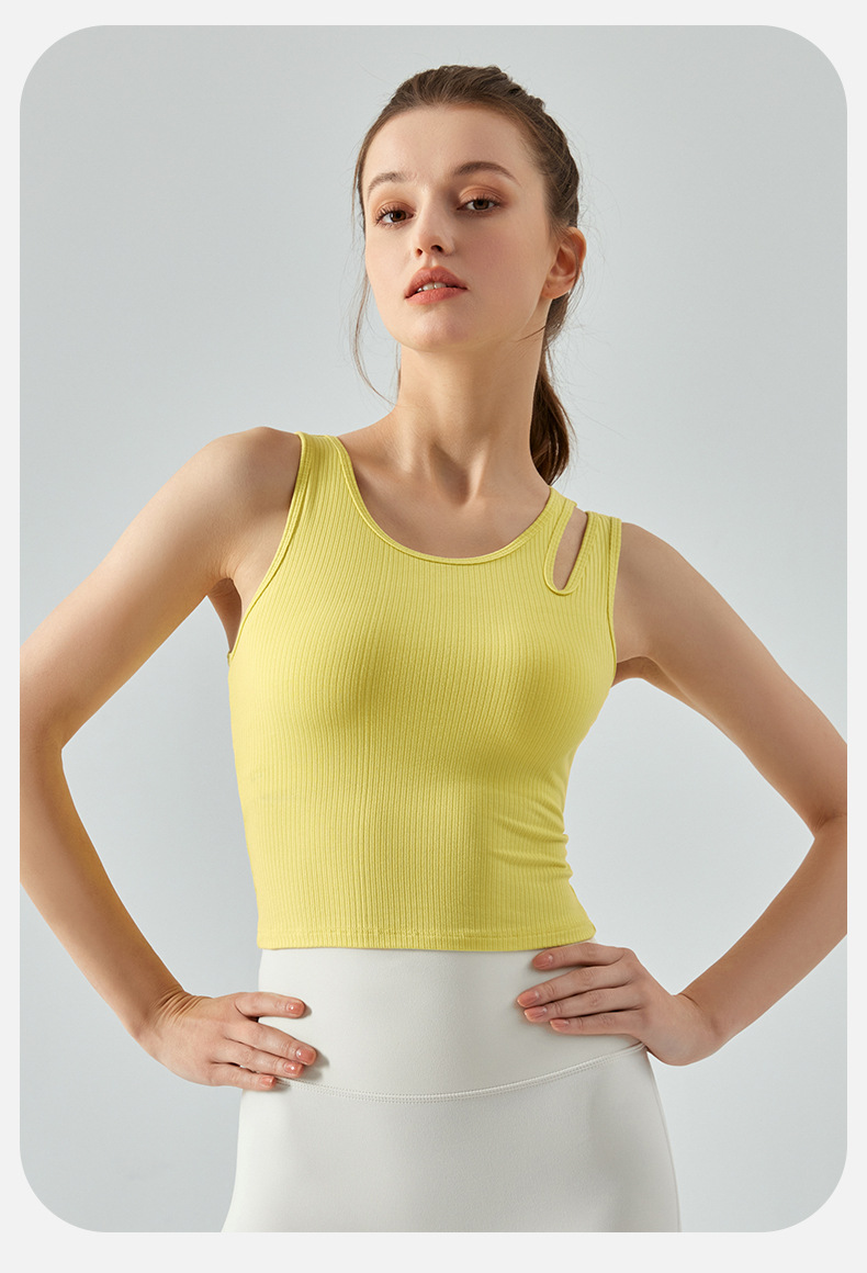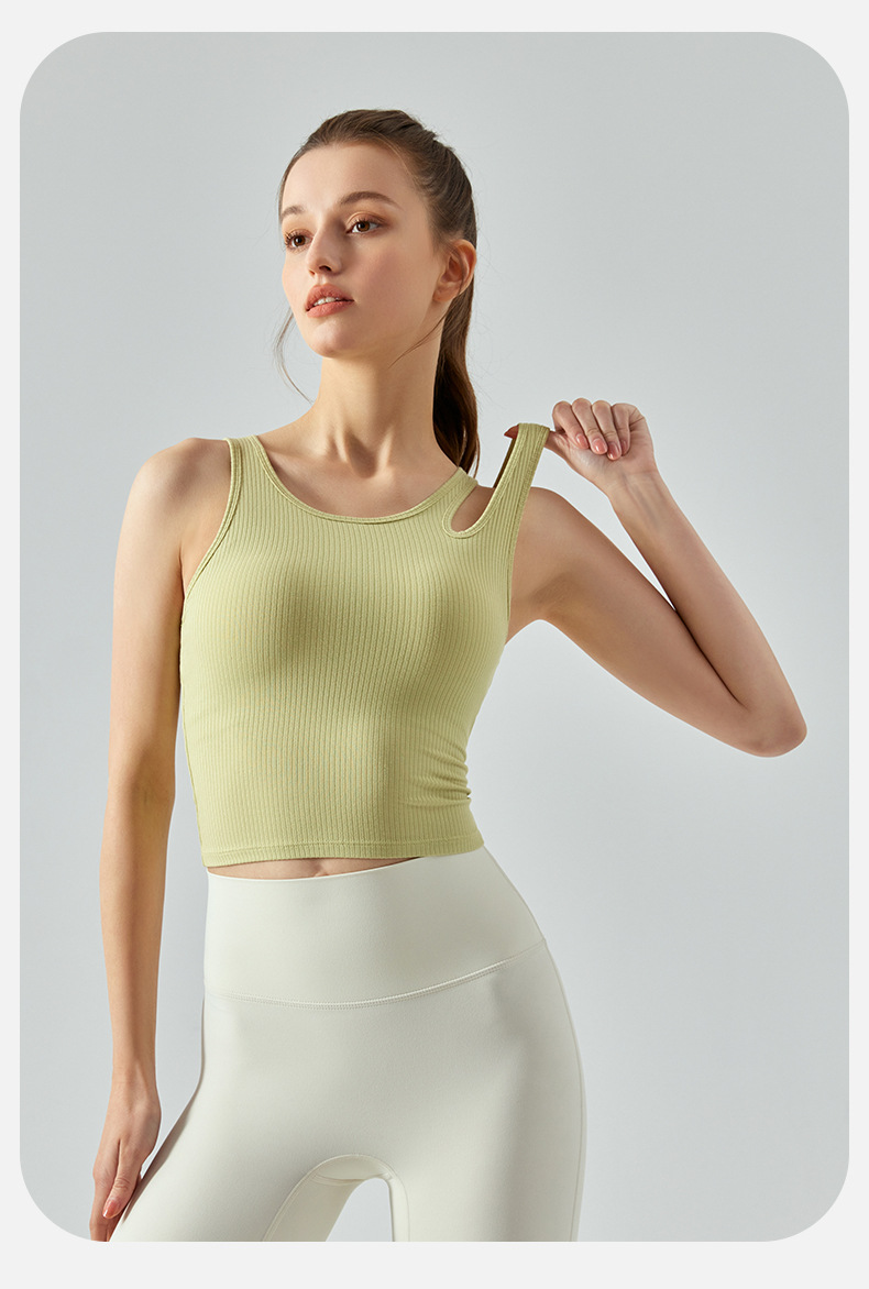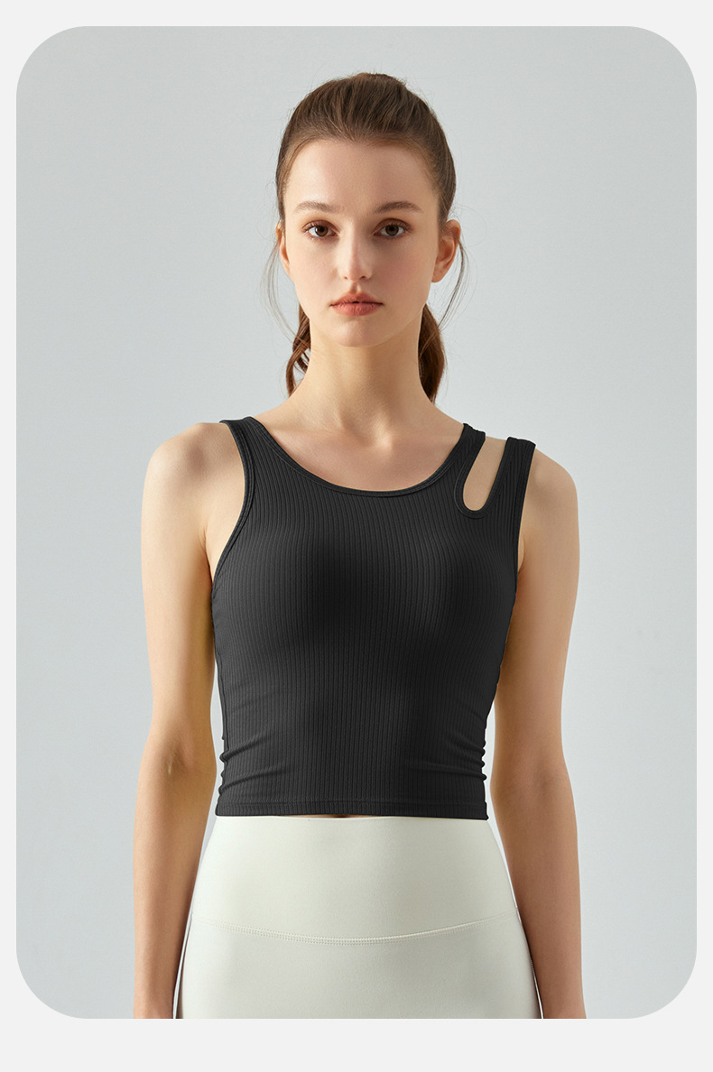 여름 프렌치 핏 스트립 스포츠 조끼 비대칭 중공 어깨 스트랩 필라테스 달리기 피트니스 요가 의류 여성 훈련스토어 가기