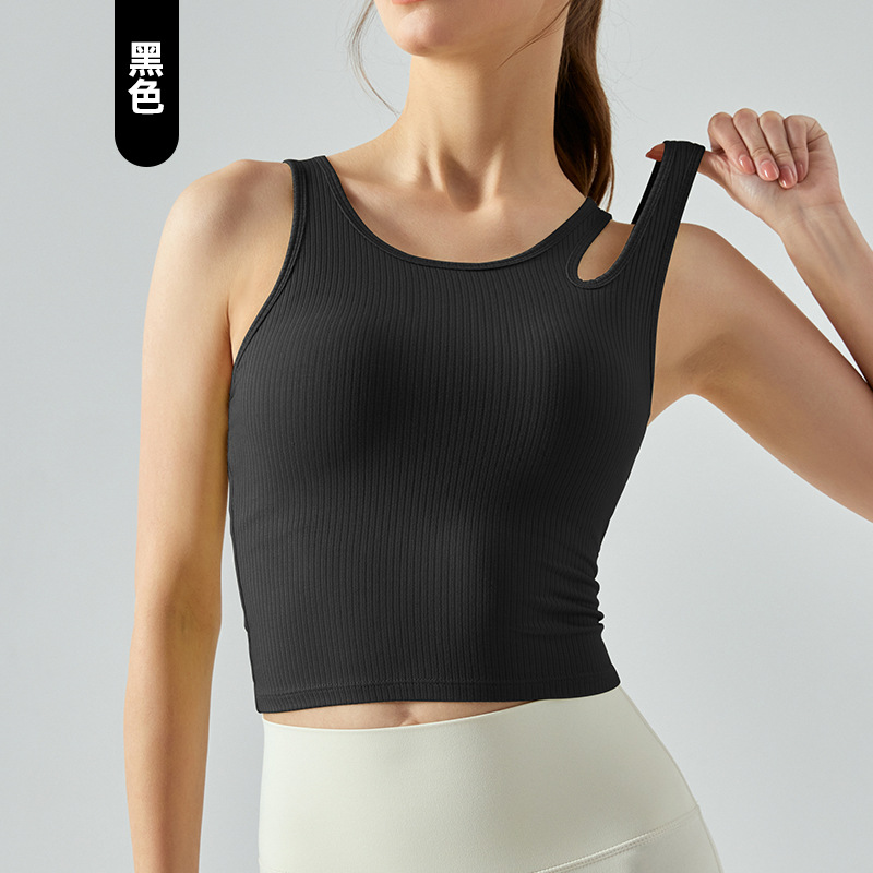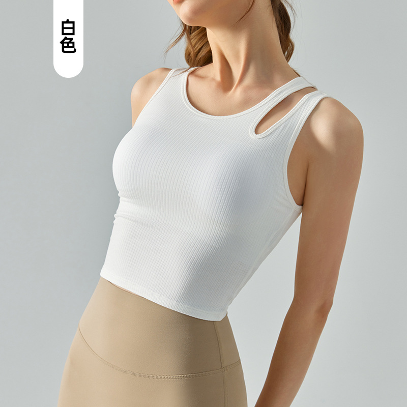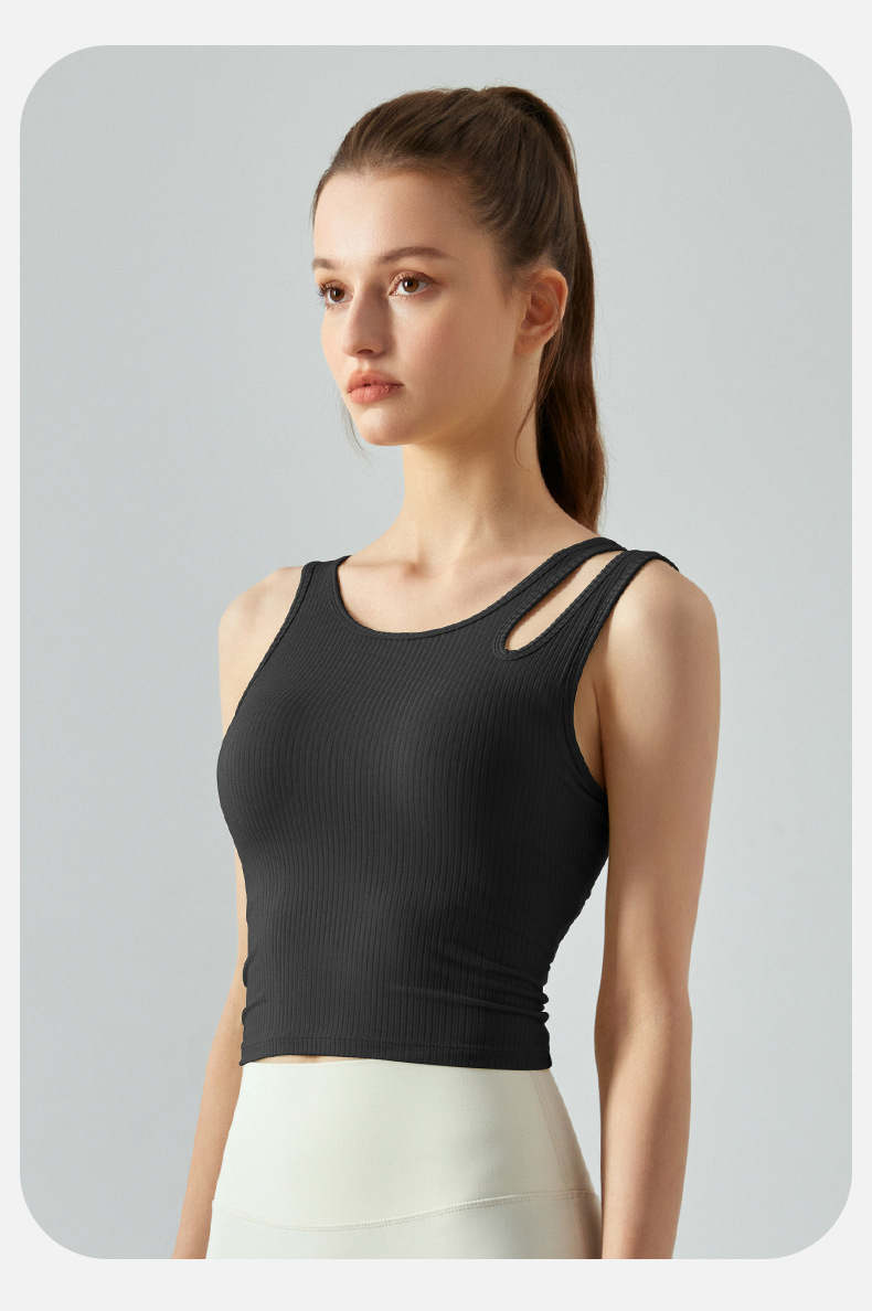 여름 프렌치 핏 스트립 스포츠 조끼 비대칭 중공 어깨 스트랩 필라테스 달리기 피트니스 요가 의류 여성 훈련