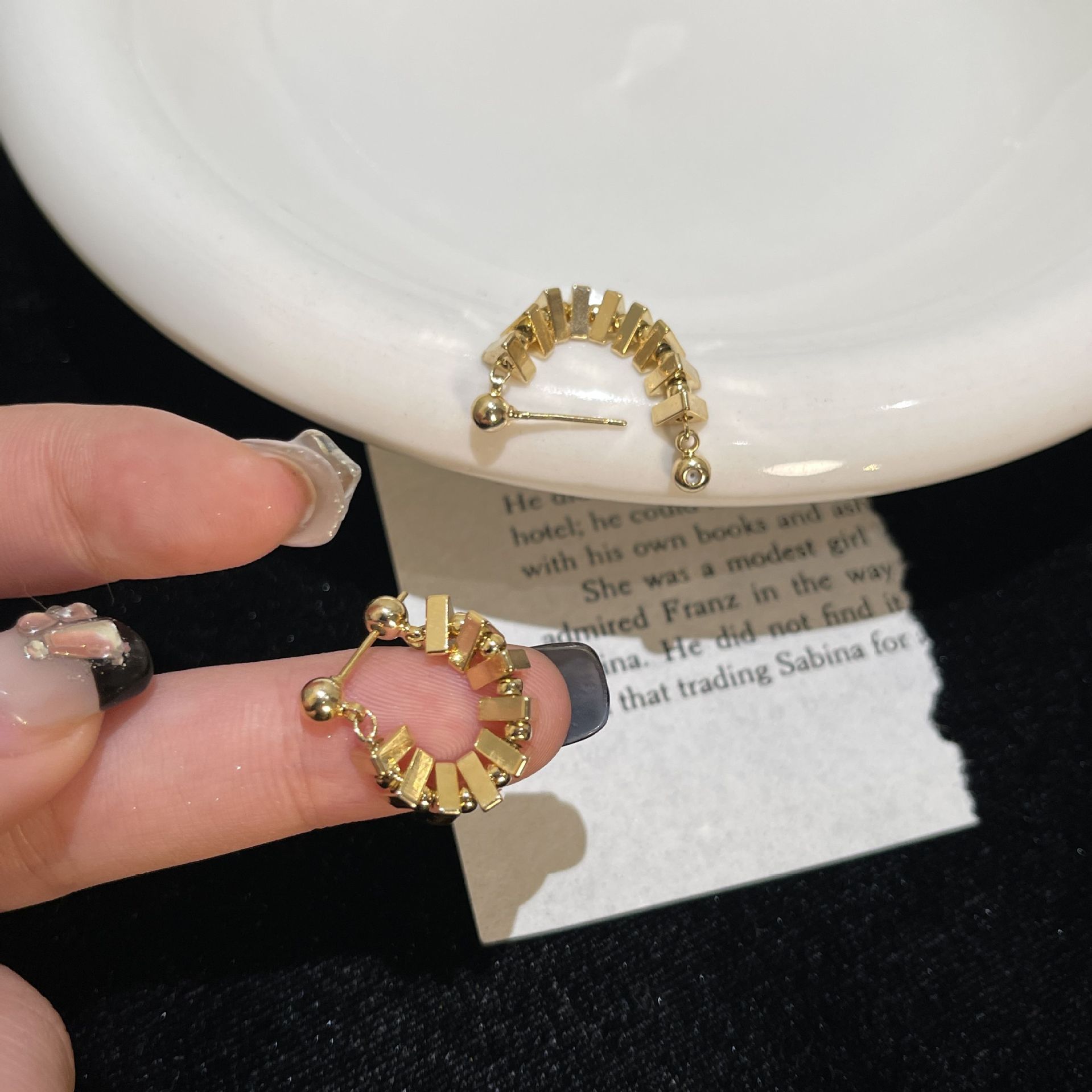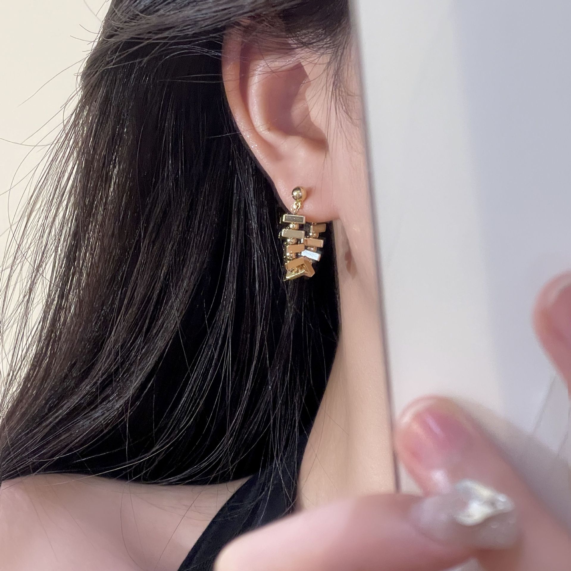 깨진 골드 프랑스 골드 실버 귀걸이 앞면과 뒷면 두 착용 금속 바람 사슬 햅번 바람 실버 핀 귀걸이 여성