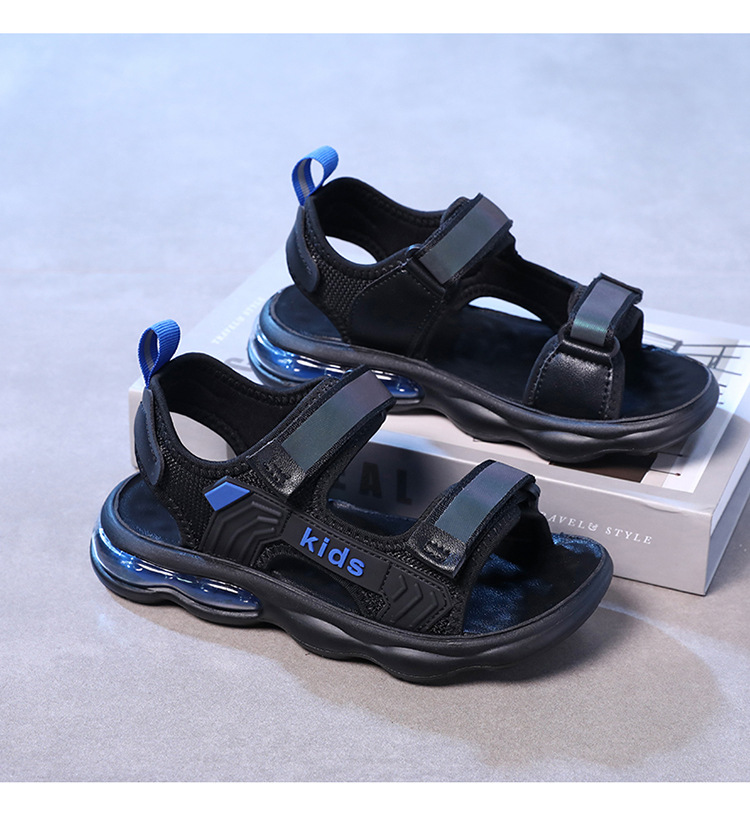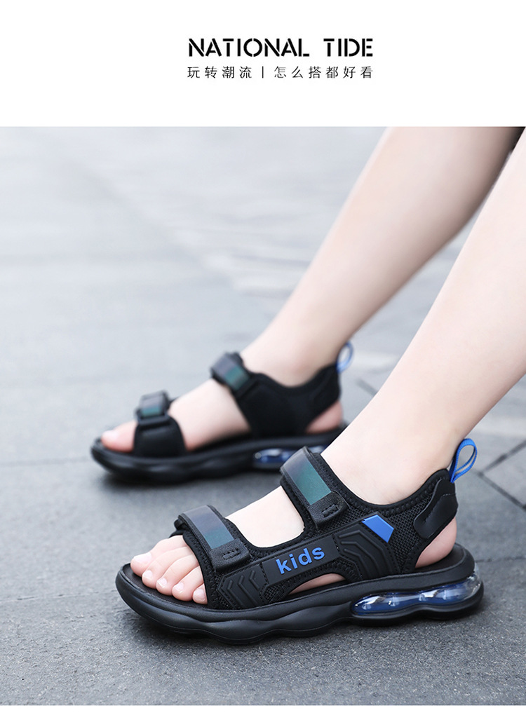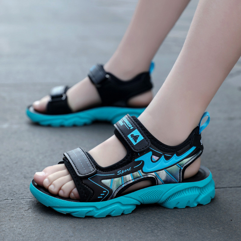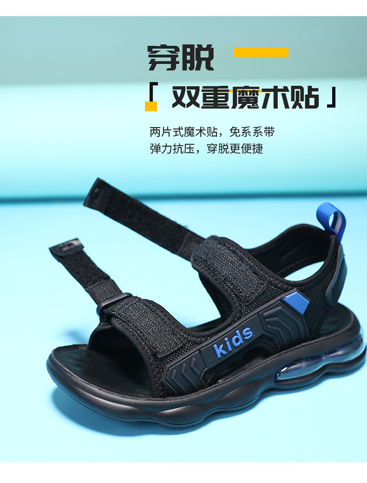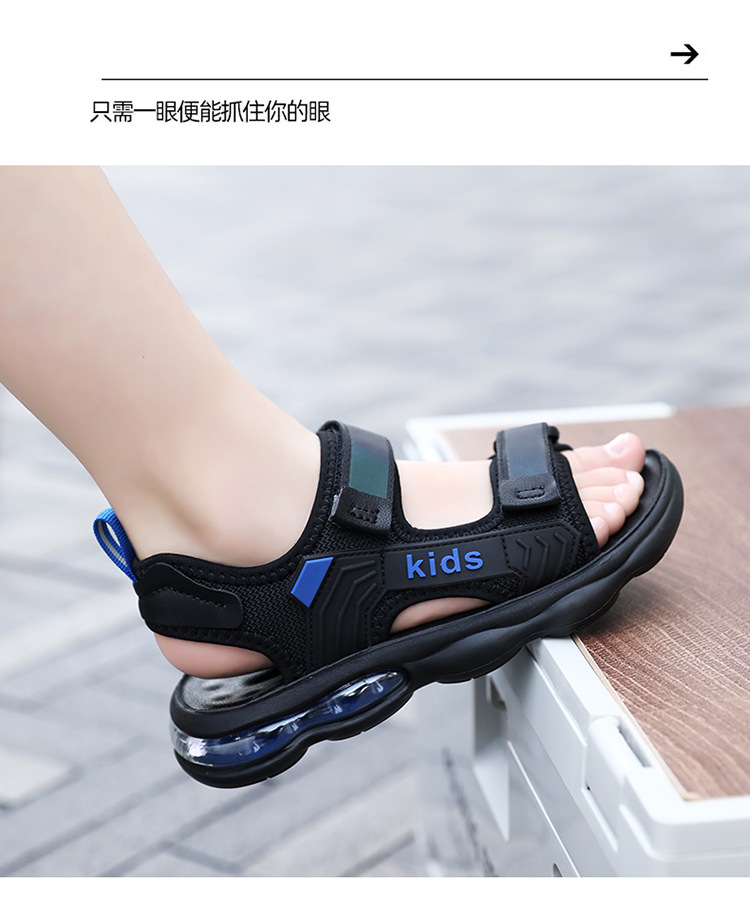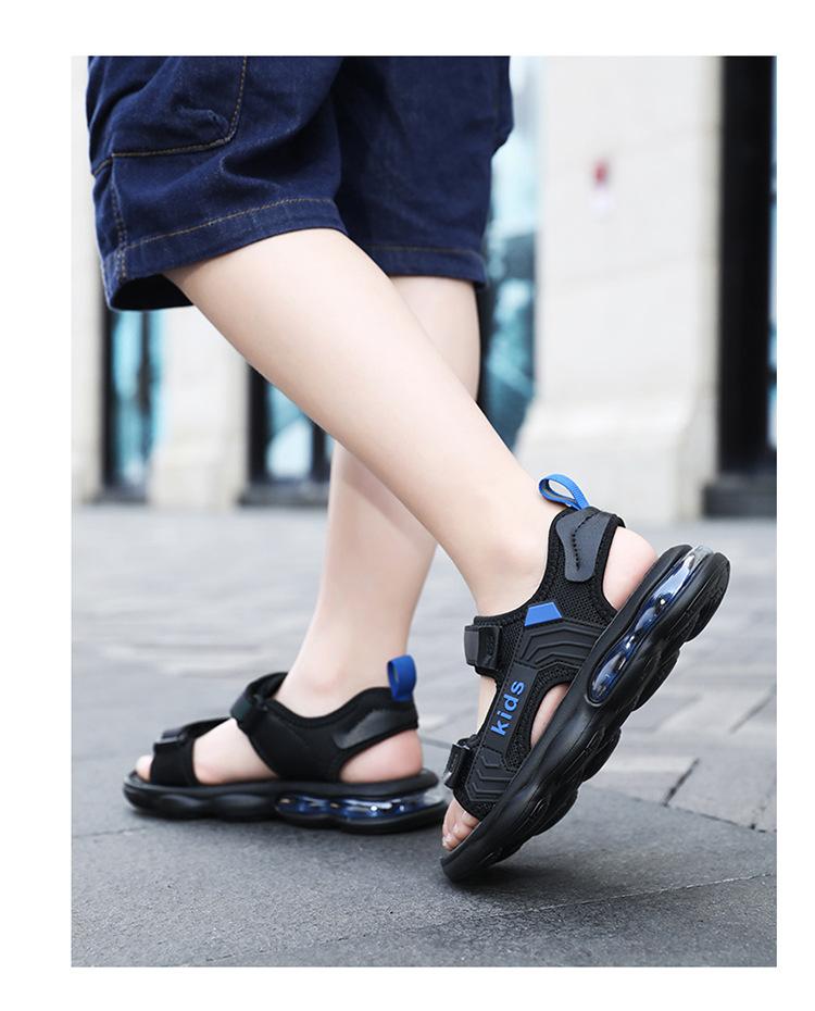 소년 샌들 2024 여름 새로운 중대형 어린이 오픈 발가락 소프트 솔 경량 벨크로 에어 쿠션 캐주얼 비치 슈즈 트렌디스토어 가기