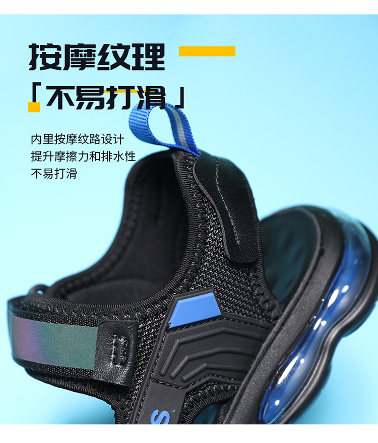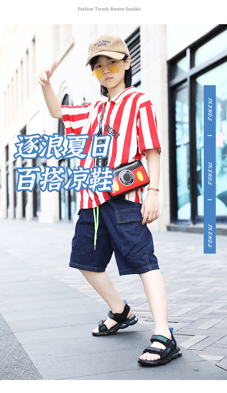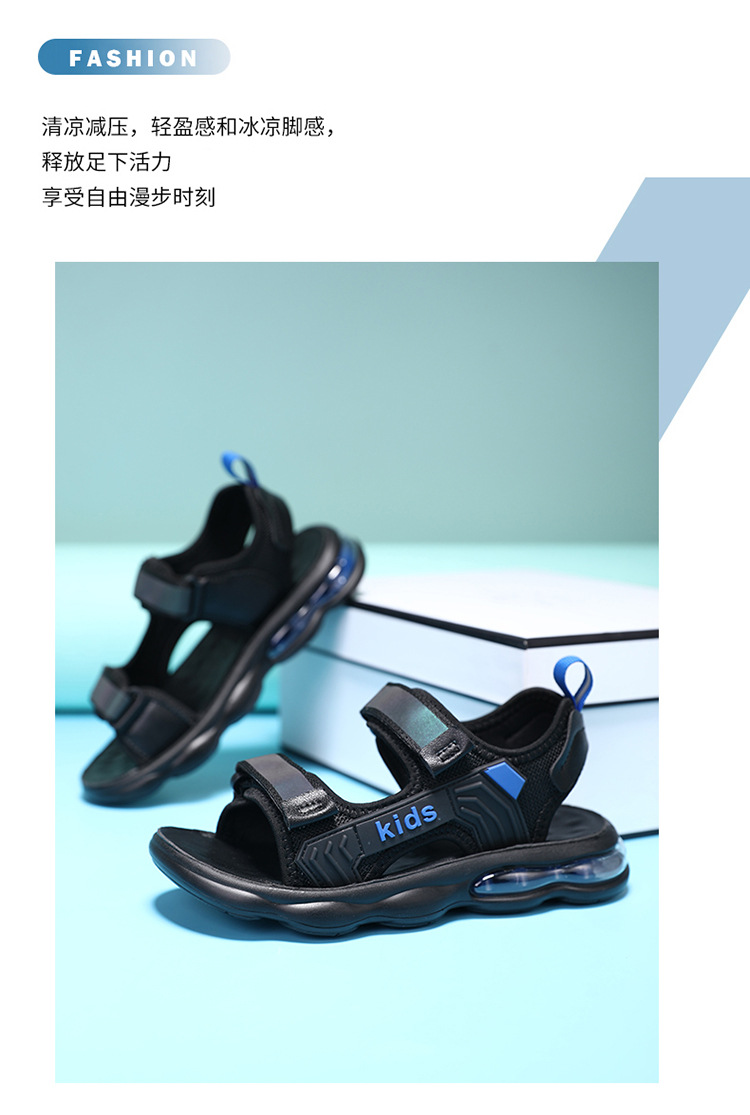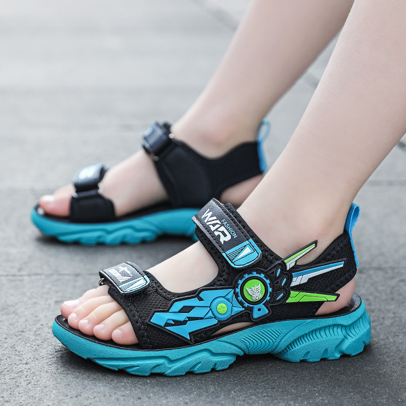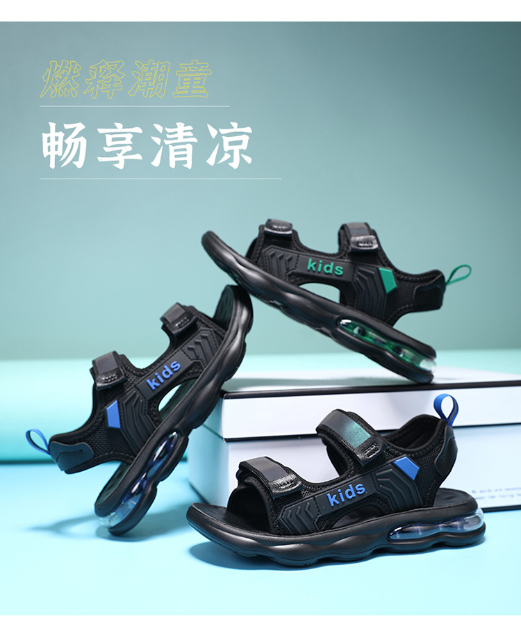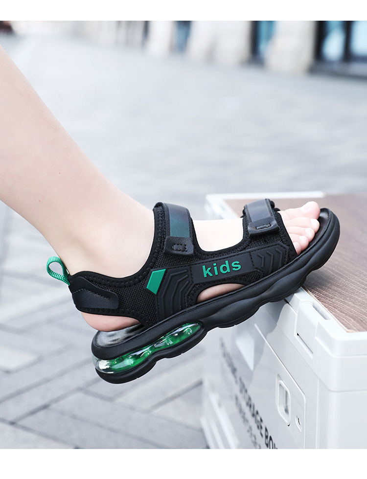 소년 샌들 2024 여름 새로운 중대형 어린이 오픈 발가락 소프트 솔 경량 벨크로 에어 쿠션 캐주얼 비치 슈즈 트렌디스토어 가기