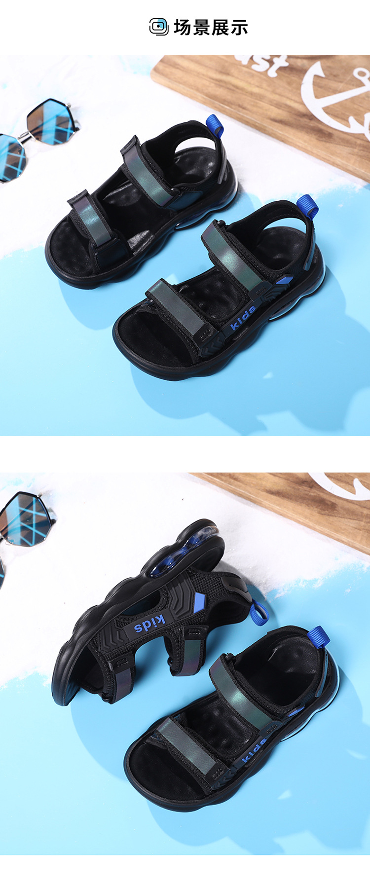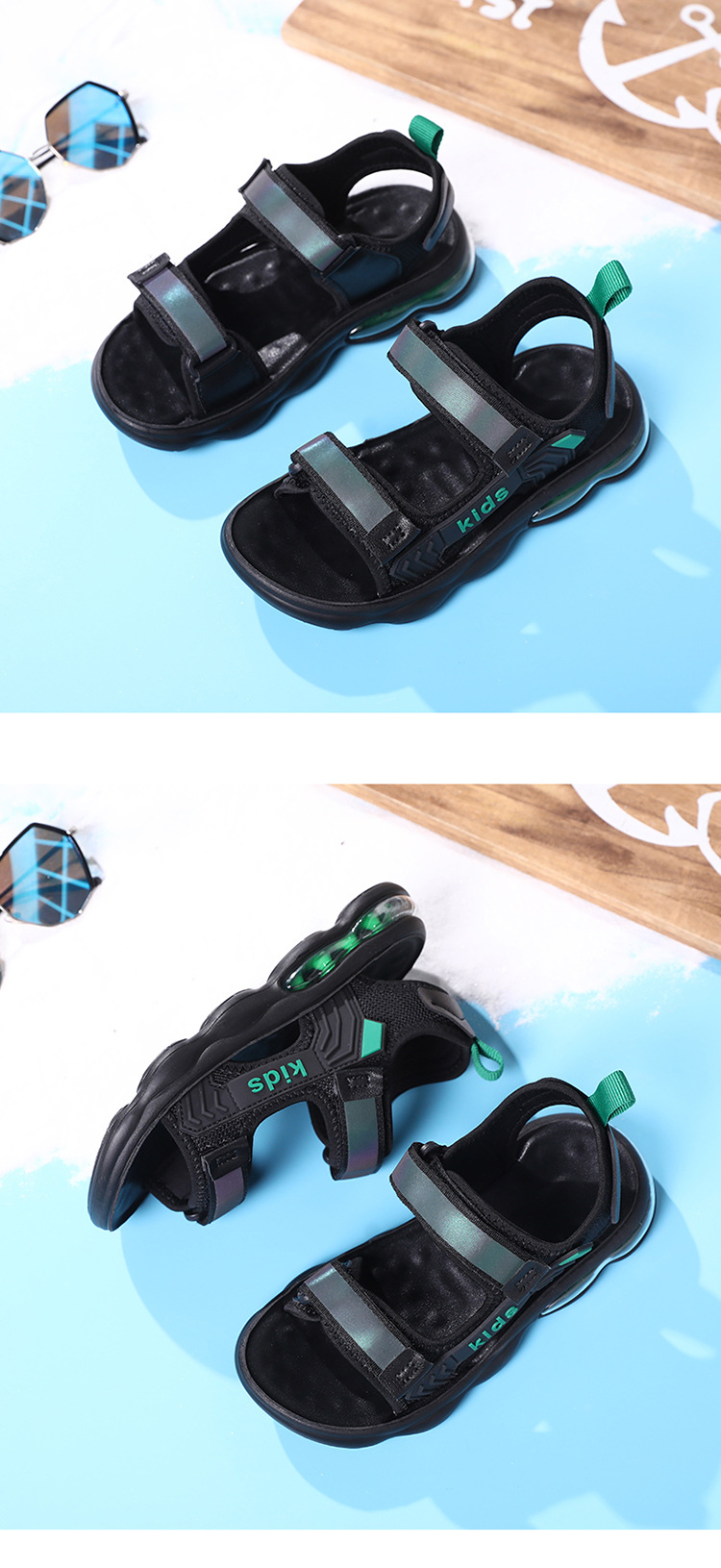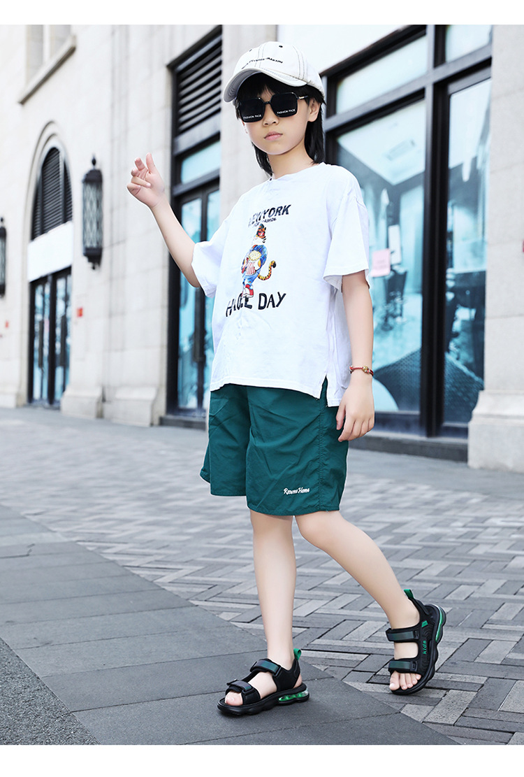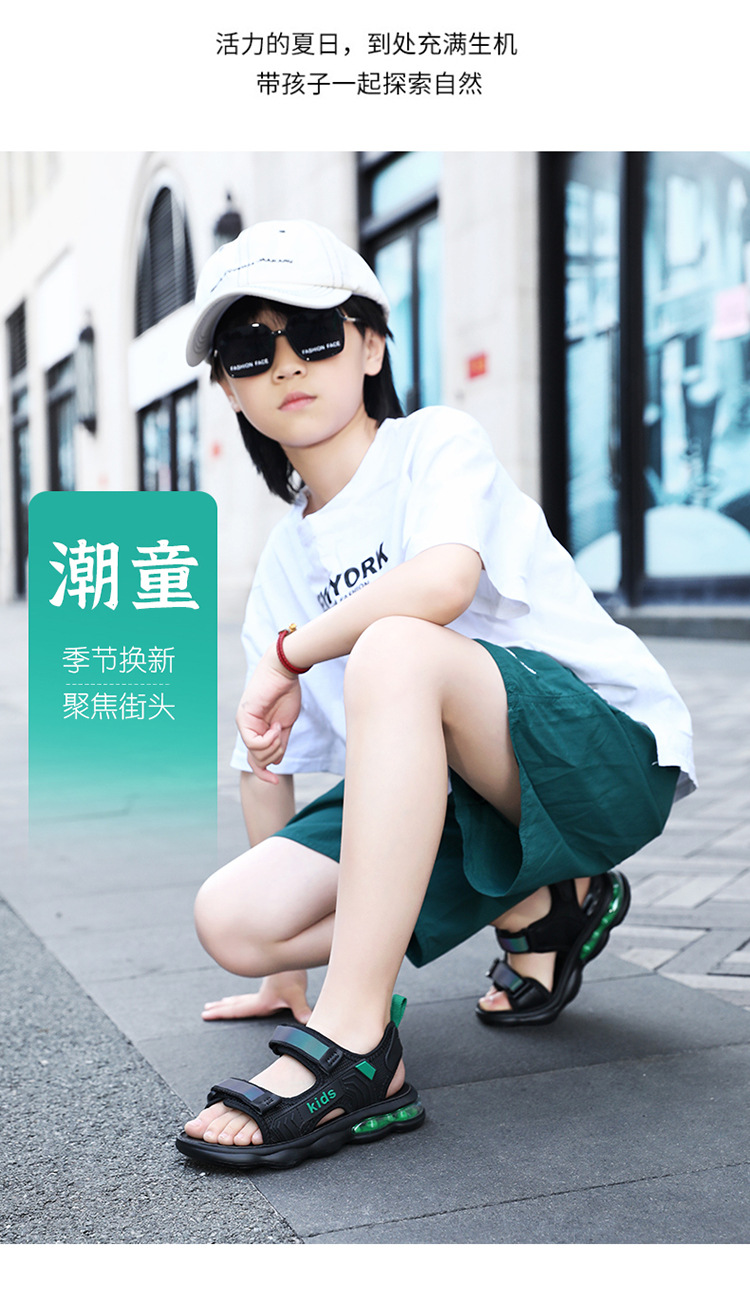 소년 샌들 2024 여름 새로운 중대형 어린이 오픈 발가락 소프트 솔 경량 벨크로 에어 쿠션 캐주얼 비치 슈즈 트렌디스토어 가기