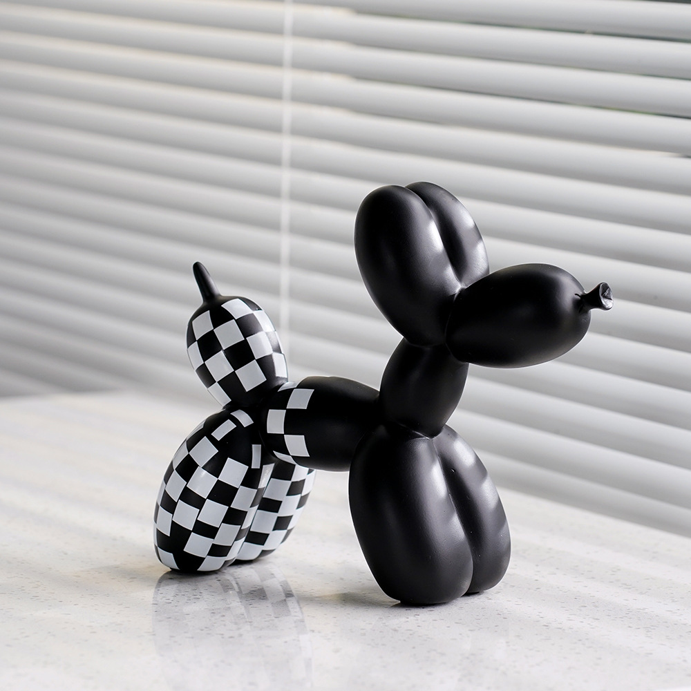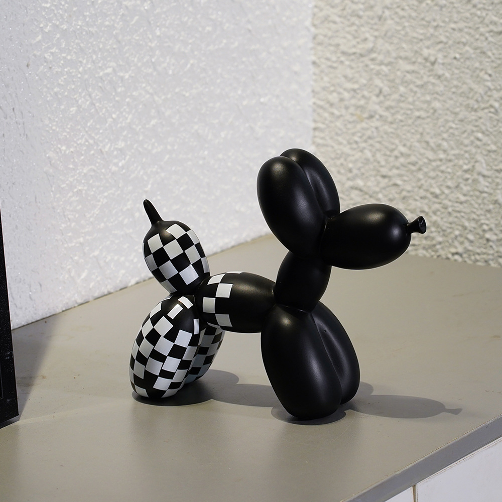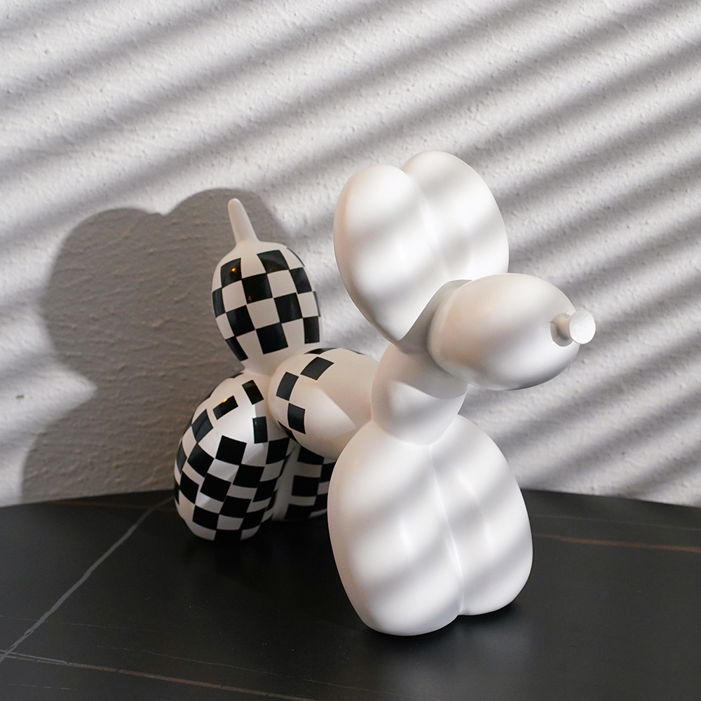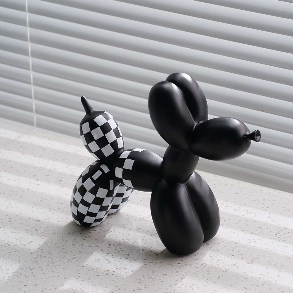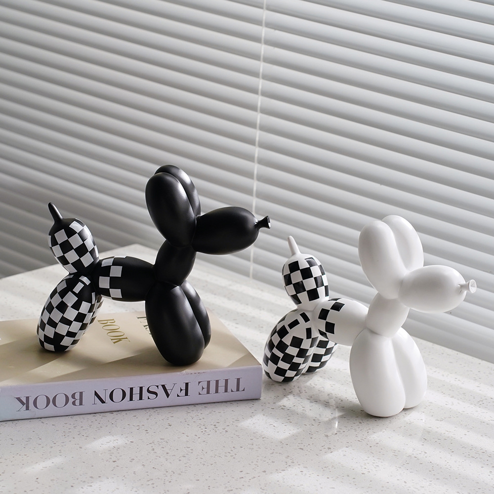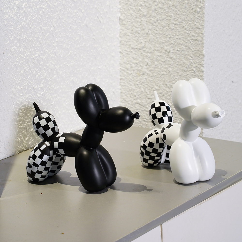국경 간 창조적 인 새로운 흑백 격자 무늬 풍선 개 장식품 가정 부드러운 거실 베란다 장식품 수지 공예