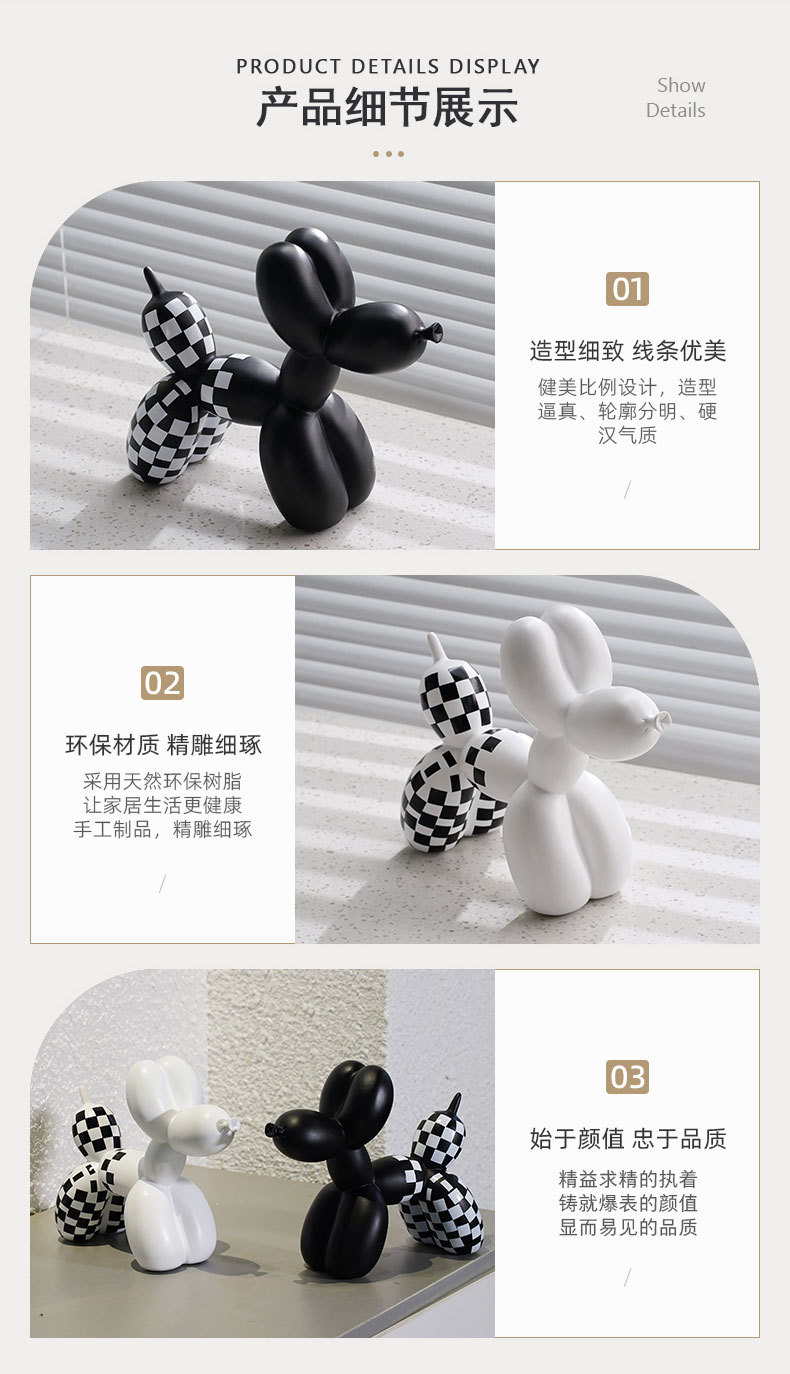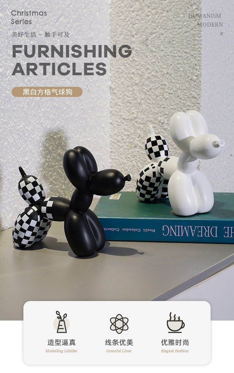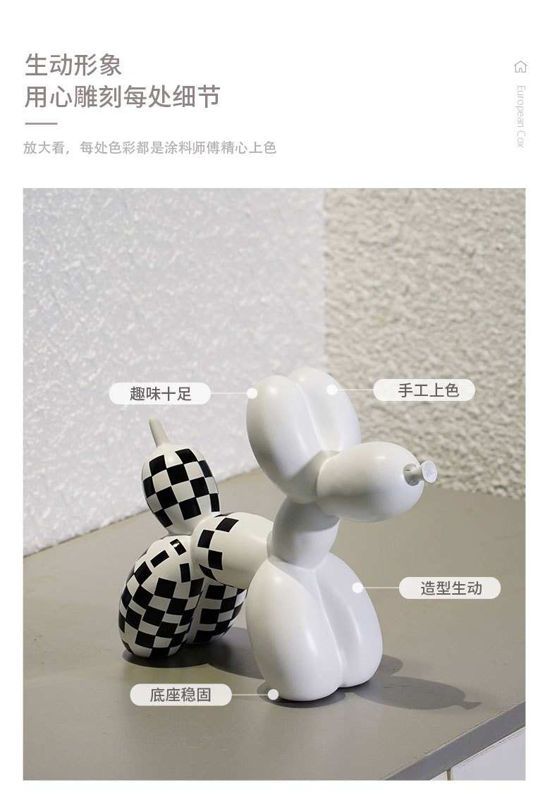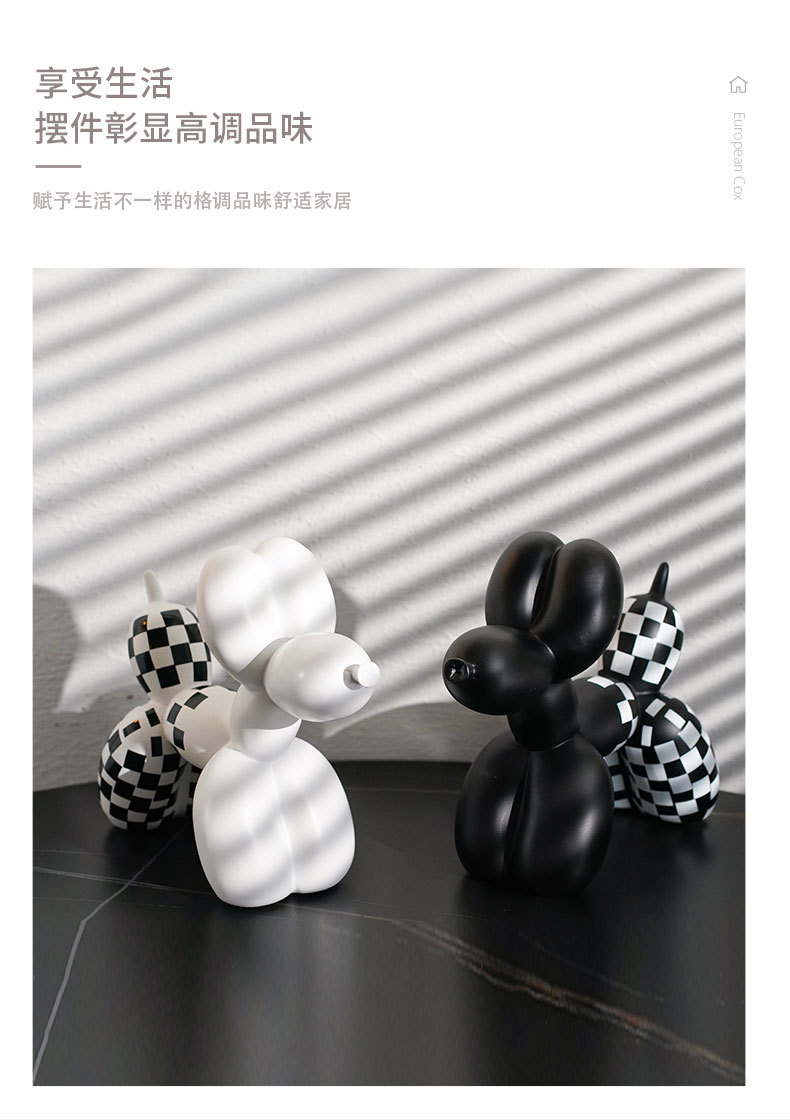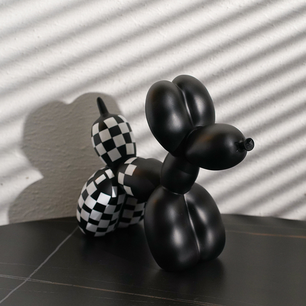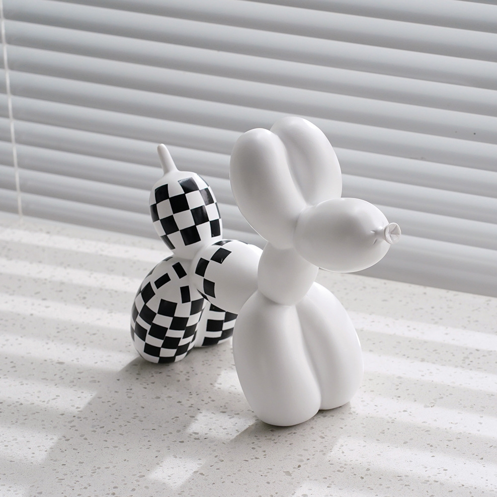 국경 간 창조적 인 새로운 흑백 격자 무늬 풍선 개 장식품 가정 부드러운 거실 베란다 장식품 수지 공예