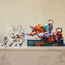 跨境欧式炫彩水转印牛摆件家居客厅玄关桌面酒柜电视柜树脂工艺品