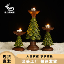 跨境仿木制圣诞树烛台底座欧式家居橱窗桌面装饰圣诞布景蜡烛摆件