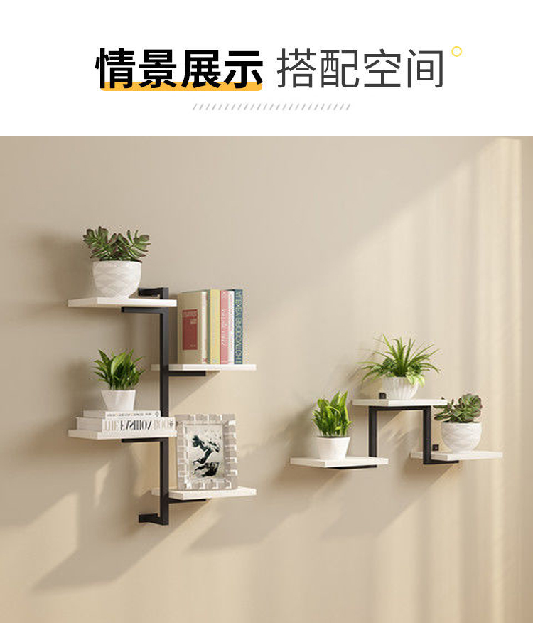 벽 꽃 랙 철 단단한 나무 빈티지 스토리지 랙 벽걸이 한 단어 파티션 보드 적층 책장 장식 다층 선반