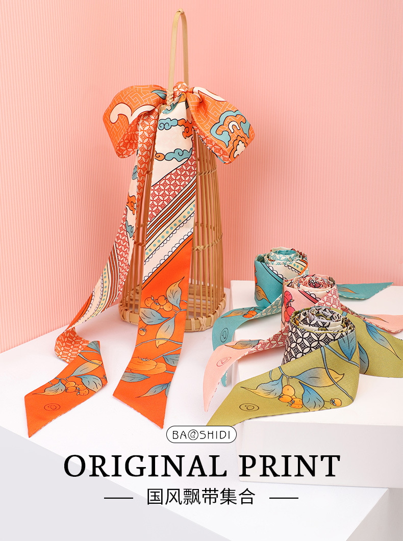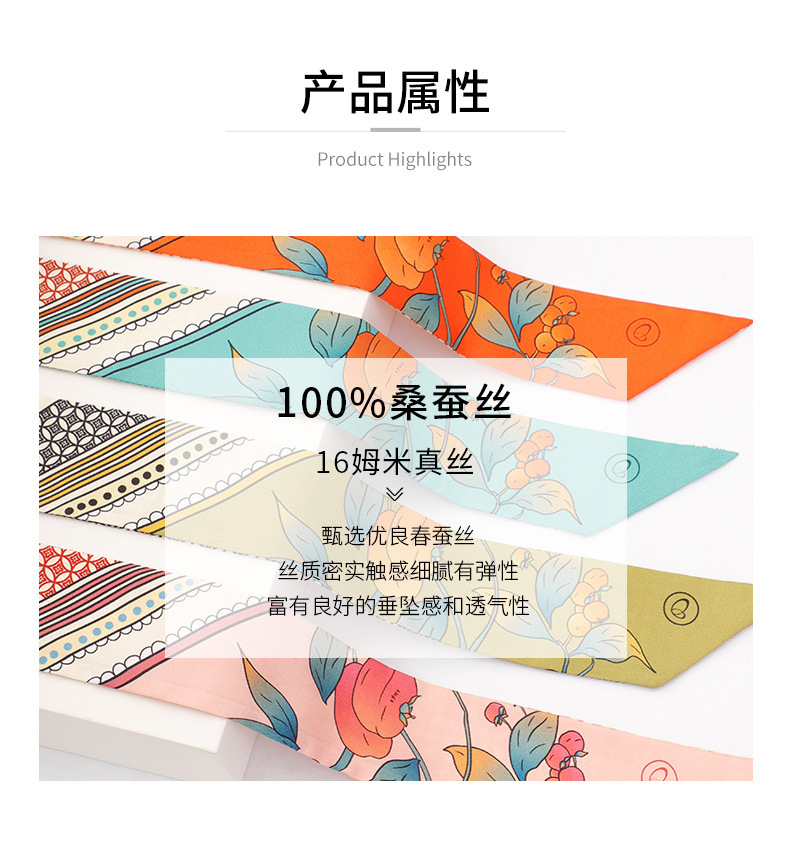 보석 나비 실크 스카프 여자의 봄과 가을 여름 스카프 무거운 뽕나무 실크 새틴 리본 모든 일치 새로운 스타일 작은 실크 스카프
