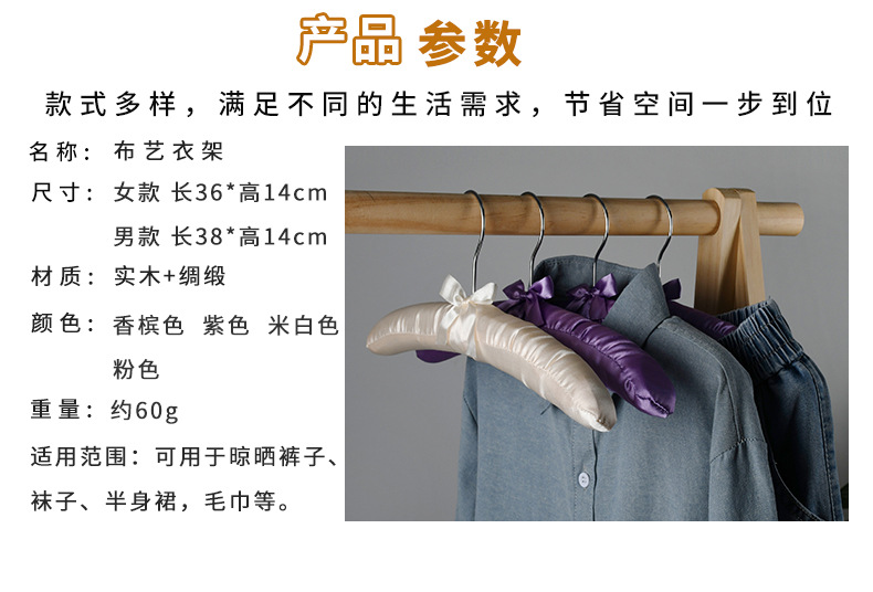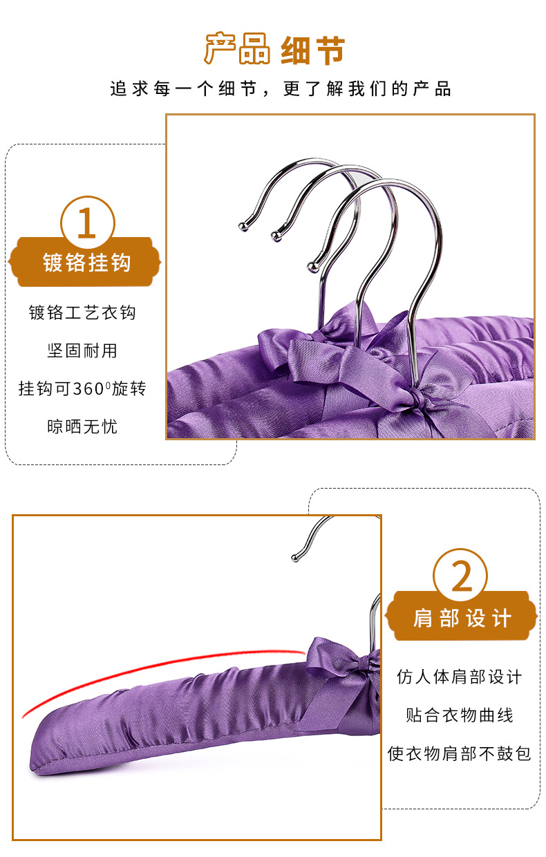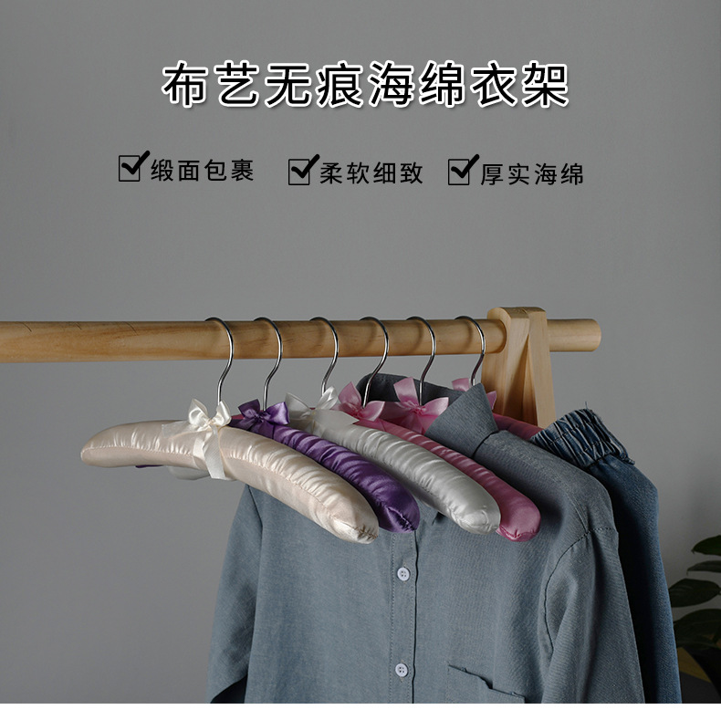 공장 직접 원활한 실크 가방 헝겊 옷걸이 웨딩 스폰지 옷 교수형 호텔 홈 부드러운 옷 패브릭 의류 브레이스