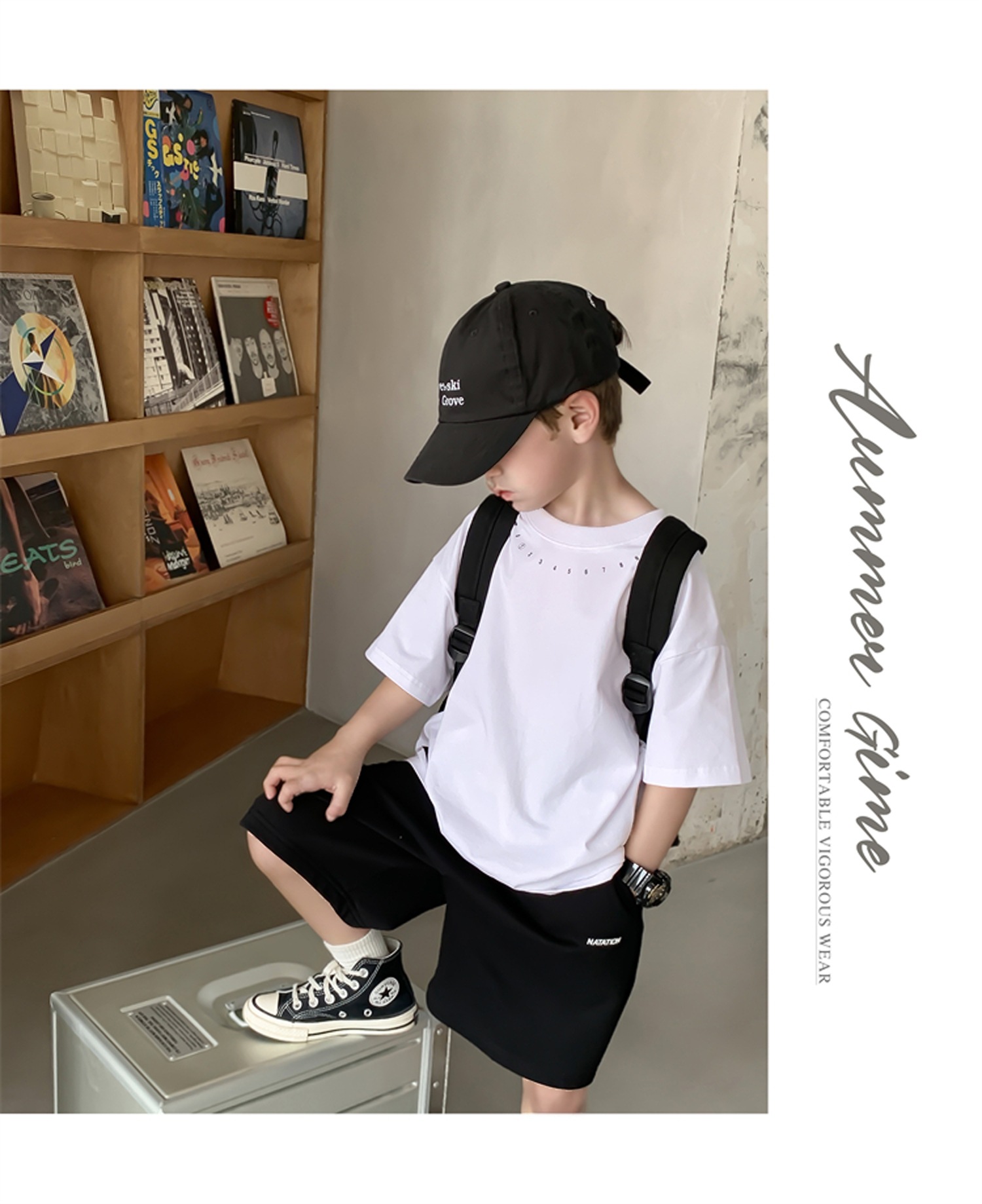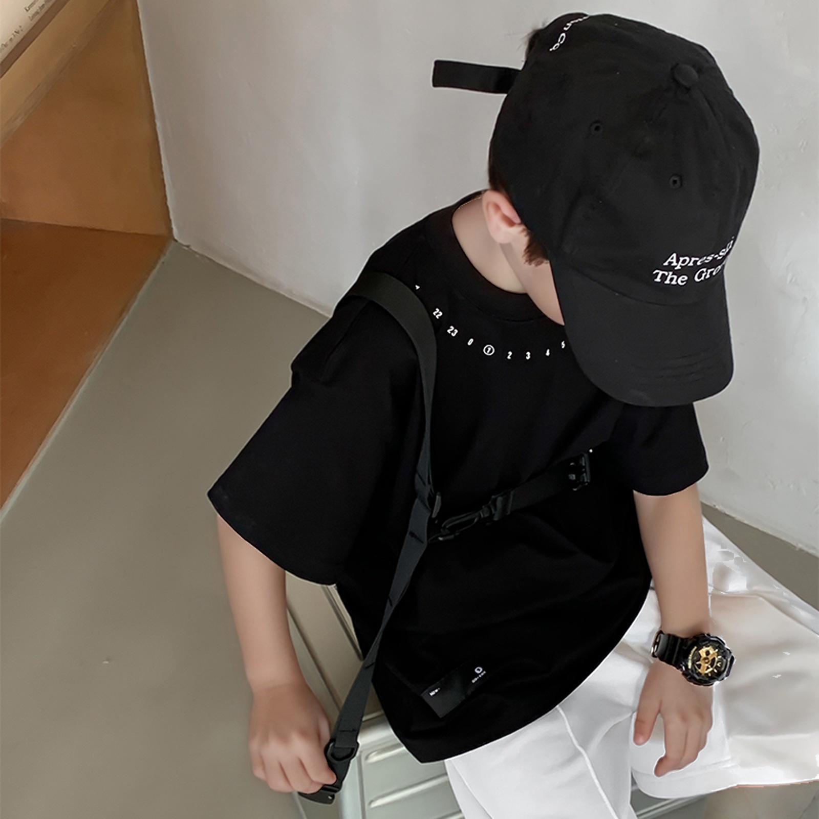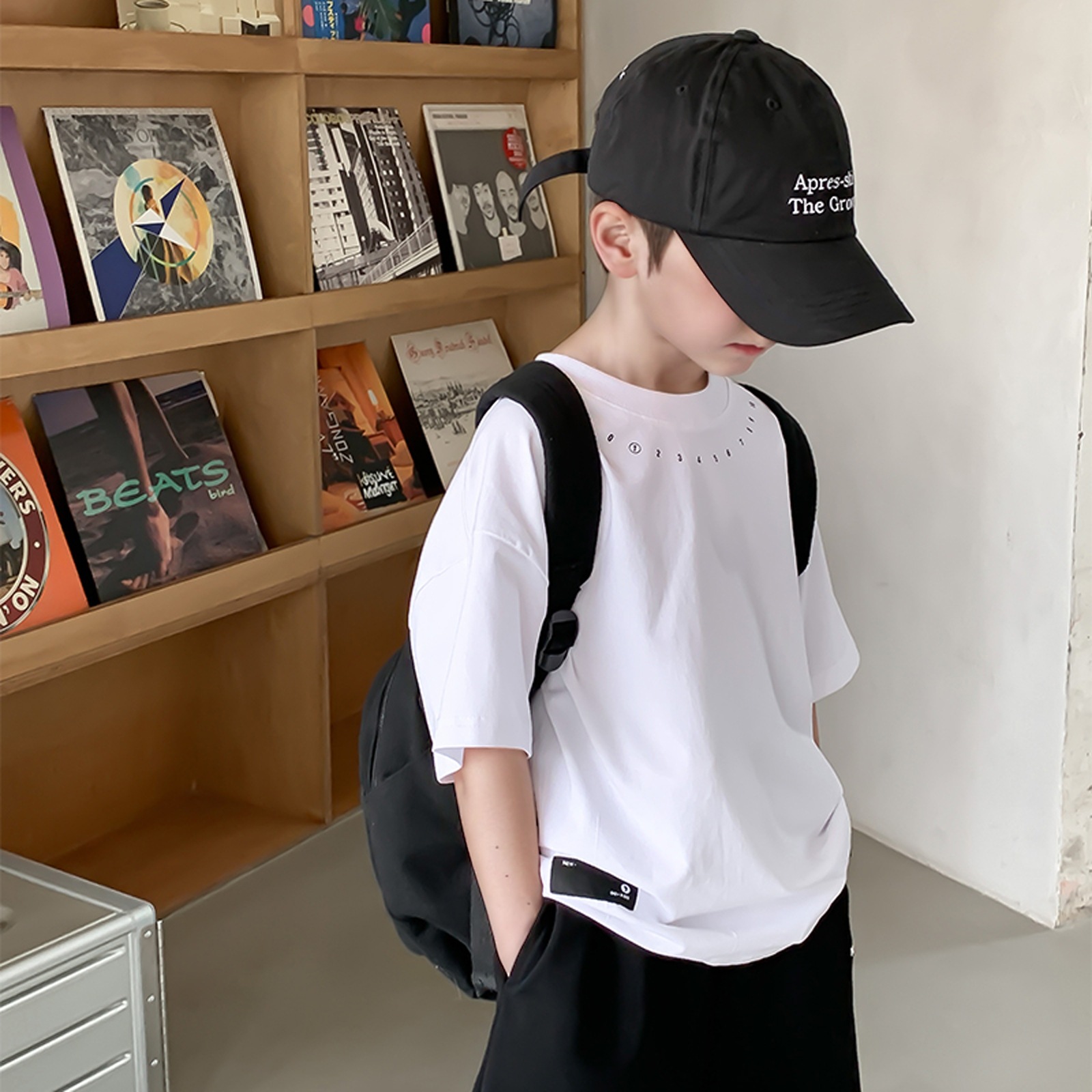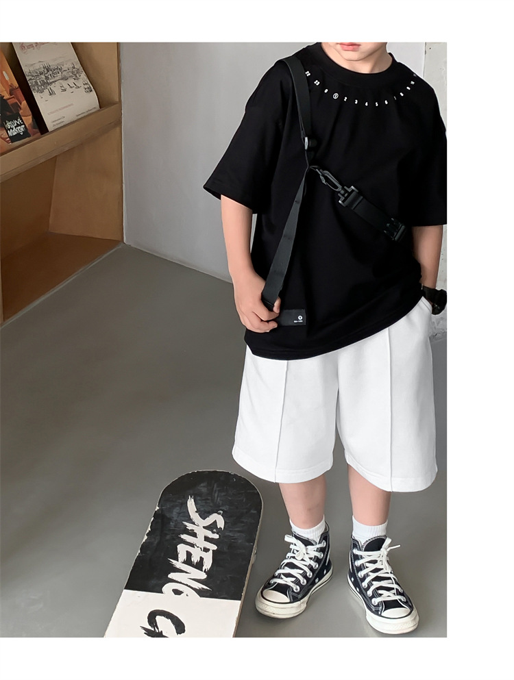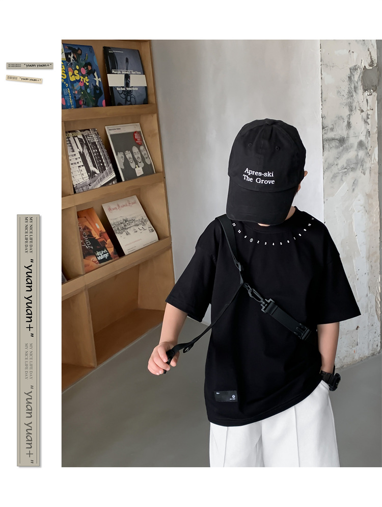 새로운 아동복 소년 라운드 넥 한국식 반팔 티셔츠 심플 트렌디 시원한 여름 옷 아동 반팔상의 서양식 루즈스토어 가기
