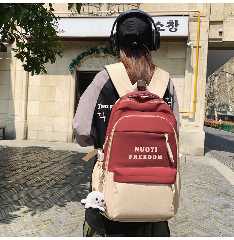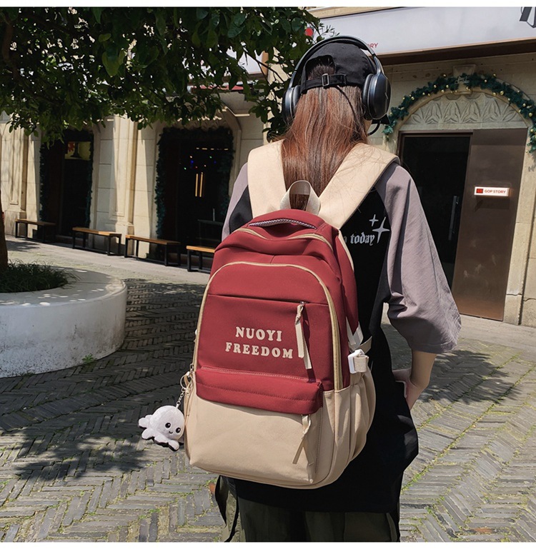 새로운 학생 배낭 대조 색상 대용량 여행 컴퓨터 가방 패션 조커 편지 커플 배낭 도매