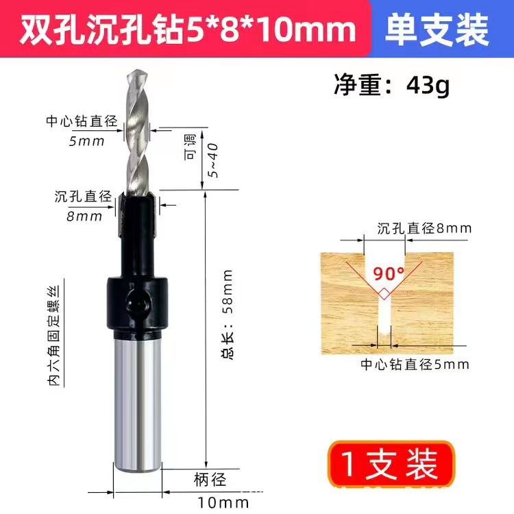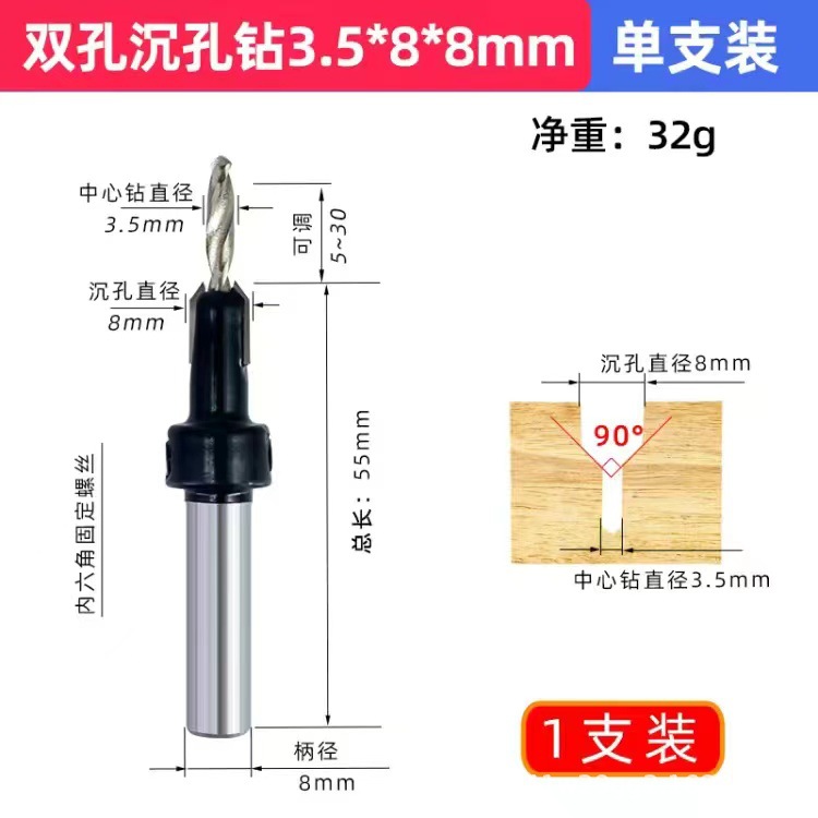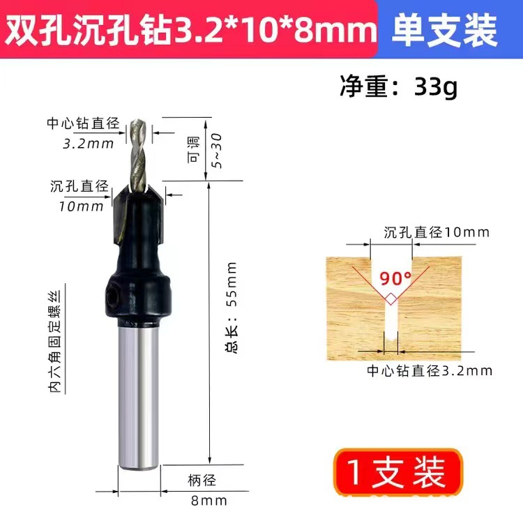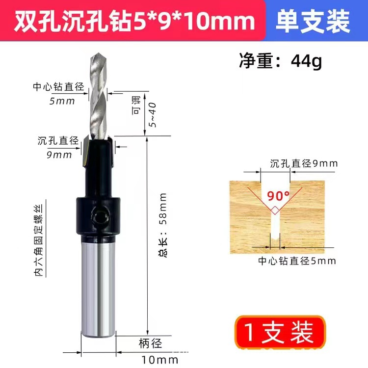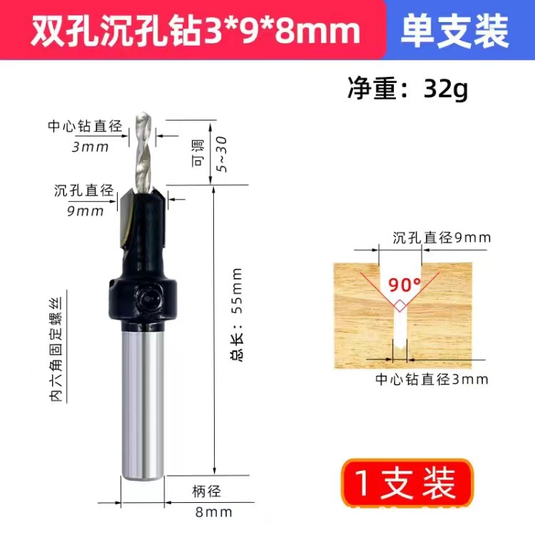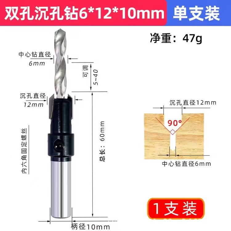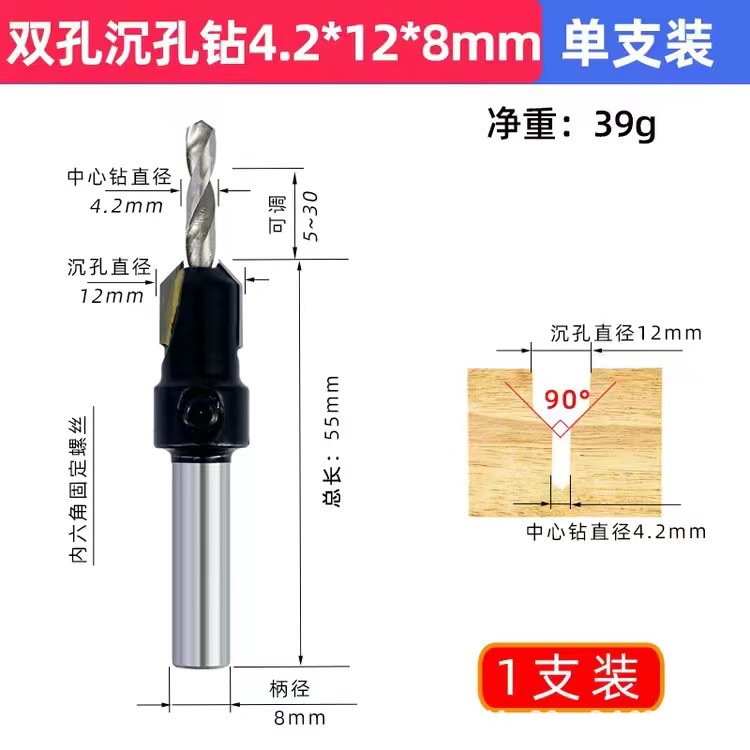 목공 이중 구멍 카운터 싱크 드릴 비표준 전기 핸드 드릴 카운터 싱크 헤드 샐러드 드릴 스크류 콘 드릴 구멍 리밍스토어 가기