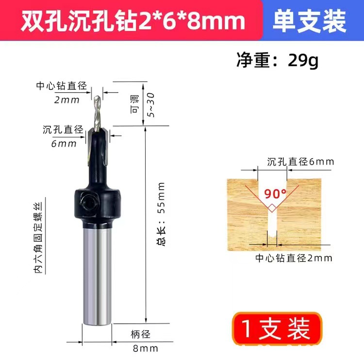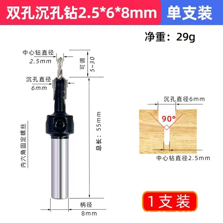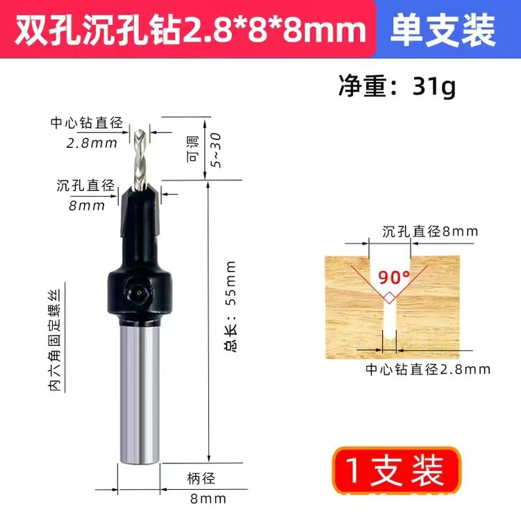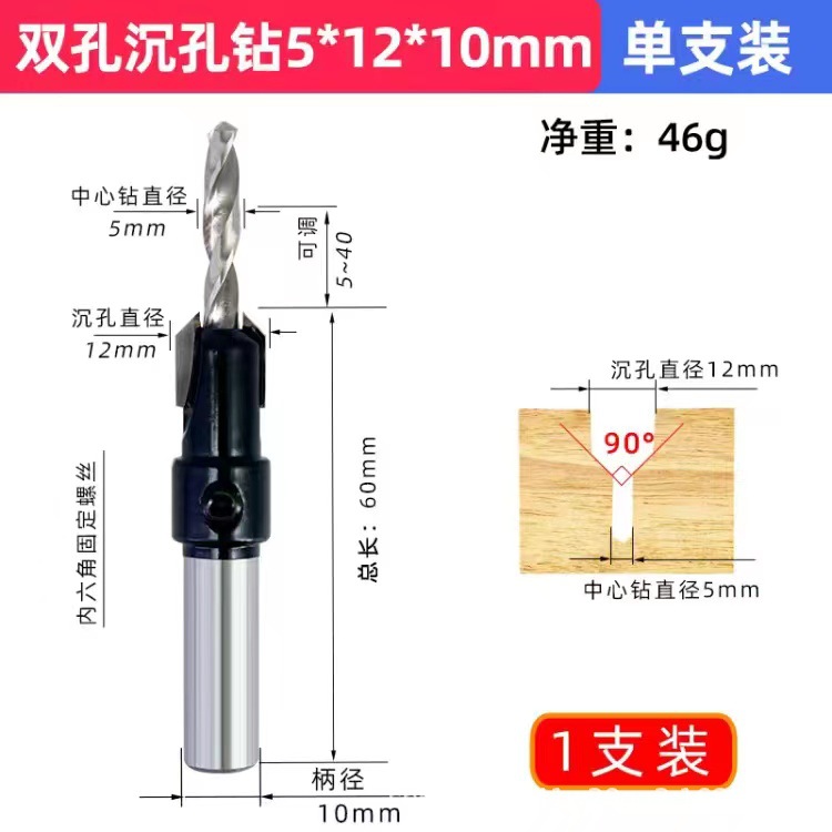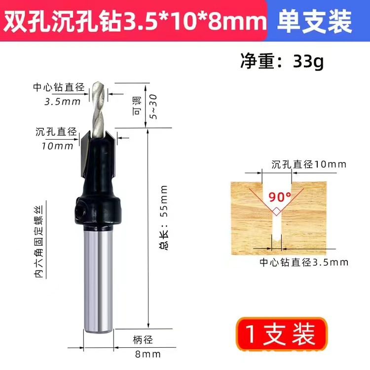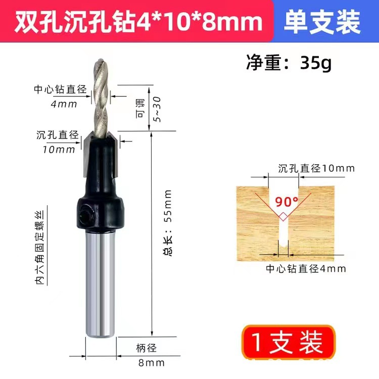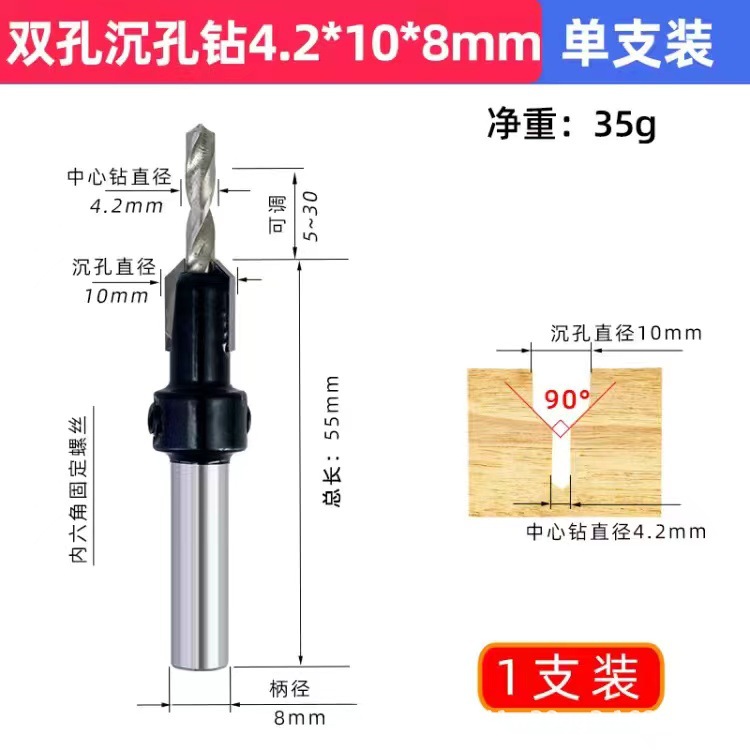목공 이중 구멍 카운터 싱크 드릴 비표준 전기 핸드 드릴 카운터 싱크 헤드 샐러드 드릴 스크류 콘 드릴 구멍 리밍스토어 가기